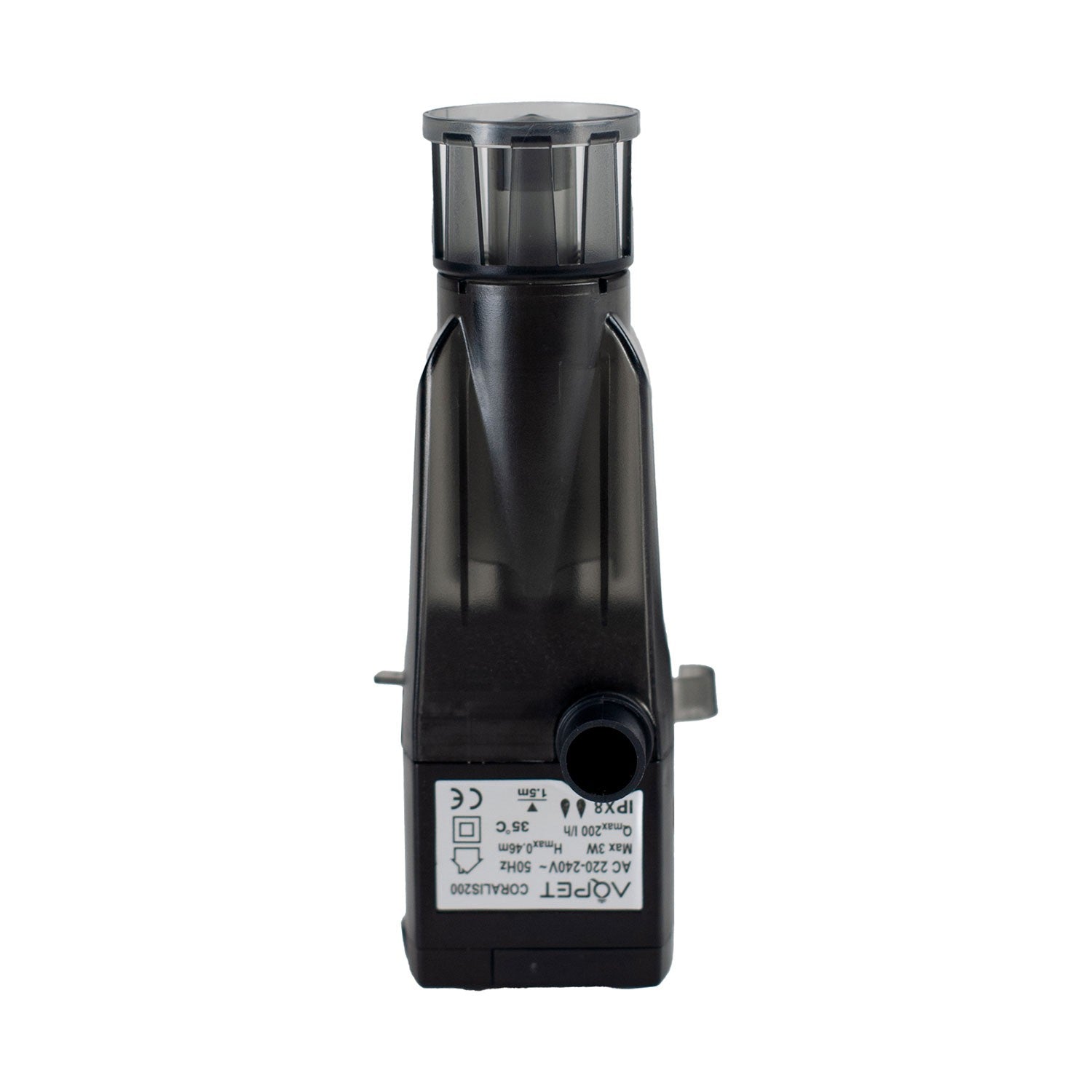 Il Coralis200 è dotato di una griglia di aspirazione situata in cima a un galleggiante, che aspira l'acqua direttamente dalla superficie dell'acquario. Questo sistema si adatta automaticamente al livello dell'acqua, assicurando un'aspirazione costante ed efficace.