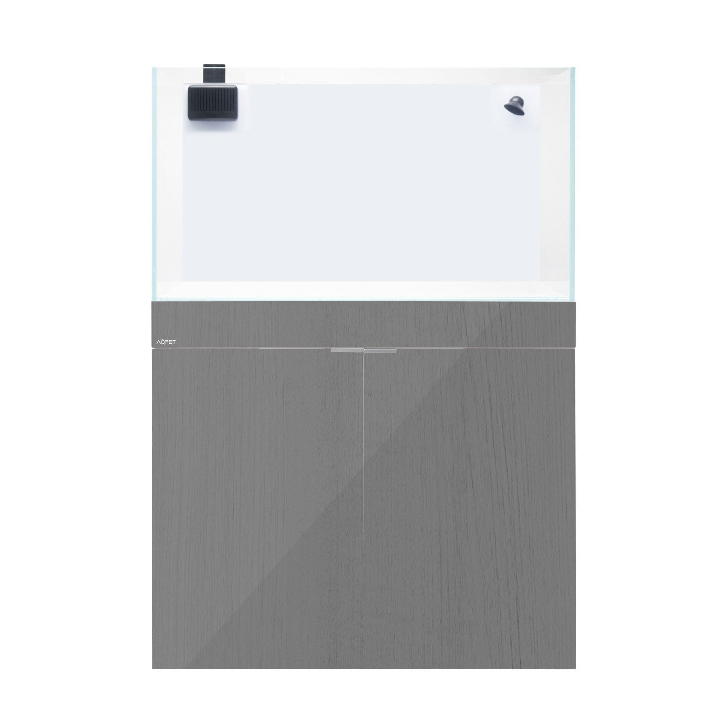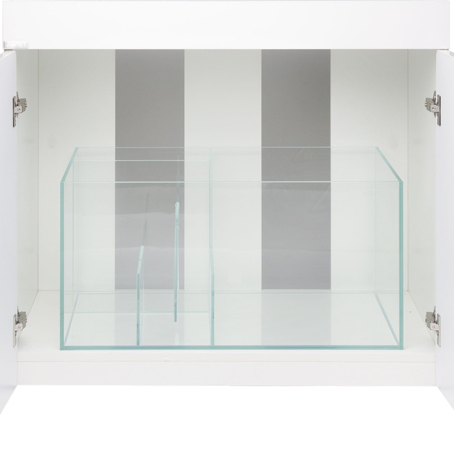 Le ante lucide aggiungono uno stile moderno, integrandosi perfettamente con l'arredamento circostante. Le dimensioni (90x50x80h cm) offrono un equilibrio armonioso tra forma e funzione e permettono di mantenere l'acquario saldo.