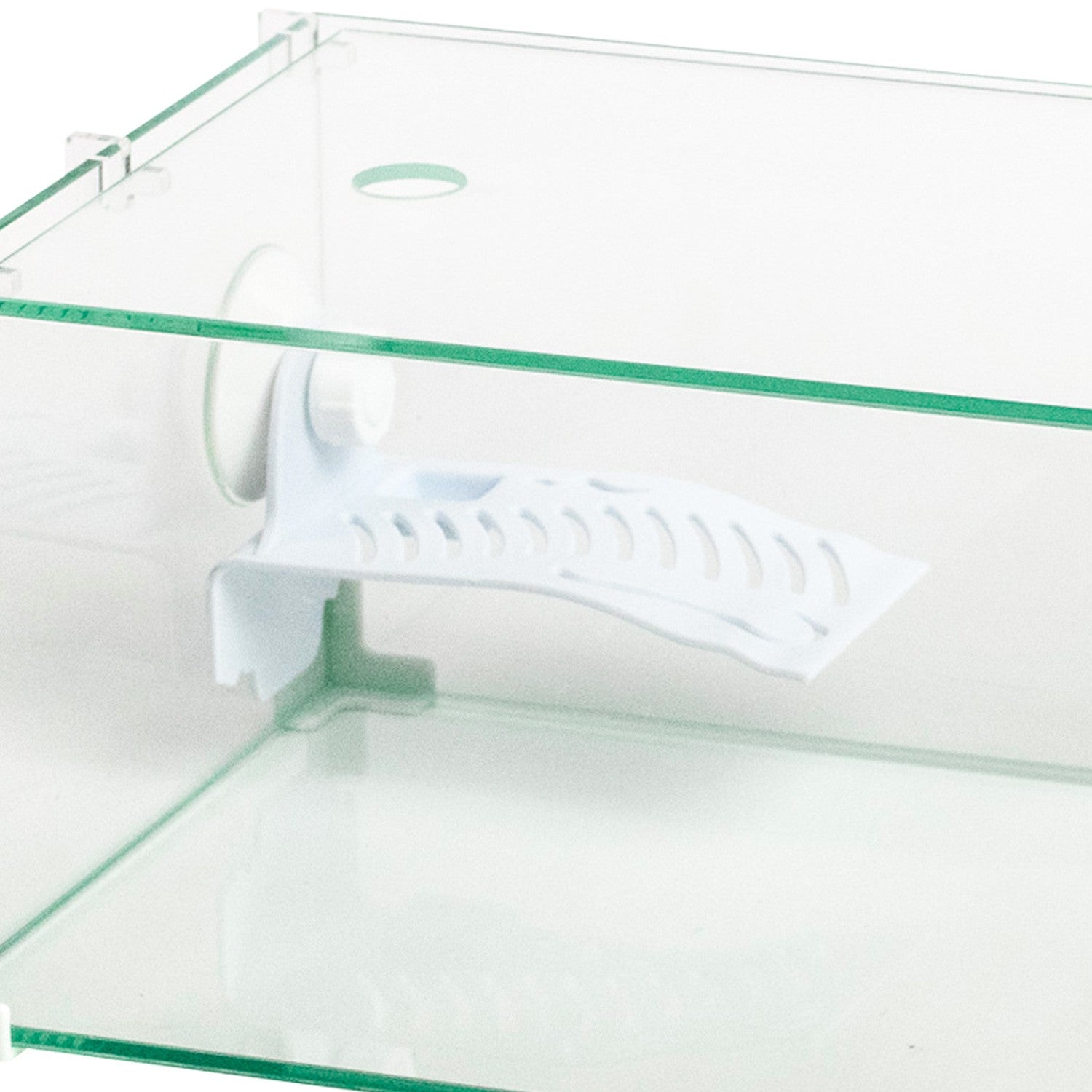 Per consentire alle tartarughe di godere di un ambiente versatile, la tartarughiera in vetro Tortuga è dotata di un isolotto in plastica con una rampa di accesso. Questo isolotto fornisce uno spazio sicuro e asciutto dove le tartarughe possono prendere il sole e riposarsi, migliorando il loro comfort e la loro salute. La presenza dell'isolotto non solo arricchisce l'ambiente della tartarughiera, ma offre anche un elemento pratico e funzionale per il benessere delle tartarughe.