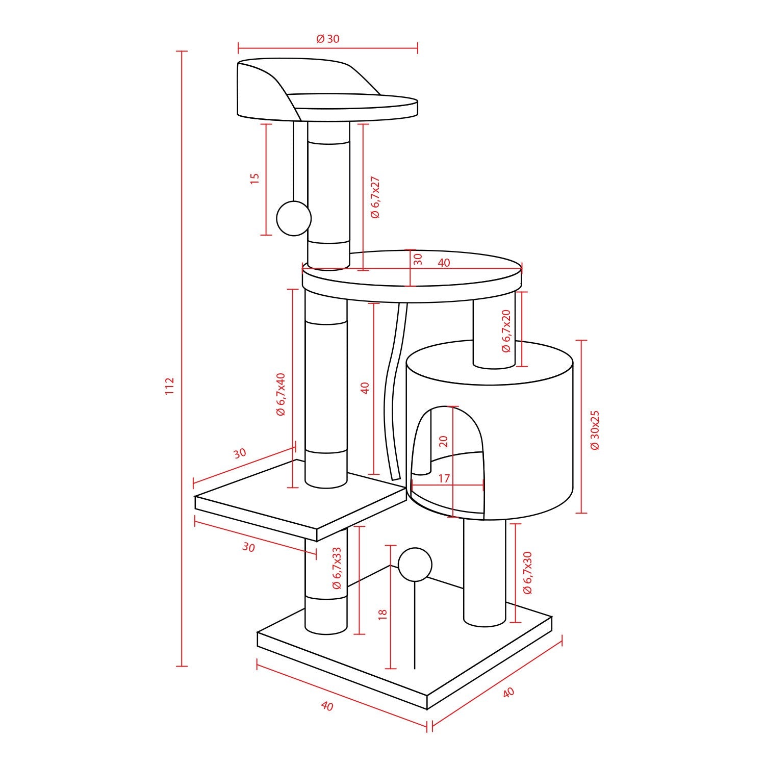Altezza Ideale: Con i suoi 112 cm, il tiragraffi offre al gatto un'area di gioco verticale che soddisfa il suo istinto naturale di arrampicarsi e grattarsi.