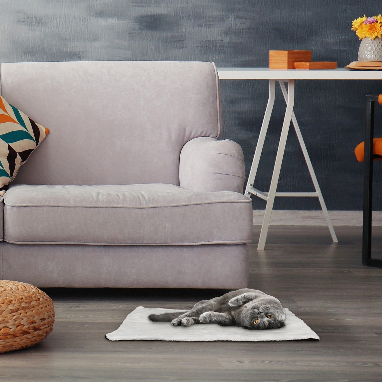 questo tappetino termico sfrutta il calore corporeo del tuo animale, concentrandolo in un accogliente rifugio. Rivestito in morbido peluche bianco, questo tappetino è l'ideale per un comfort senza sforzi, disponibile in due dimensioni per adattarsi alle diverse esigenze dei tuoi amici a quattro zampe.