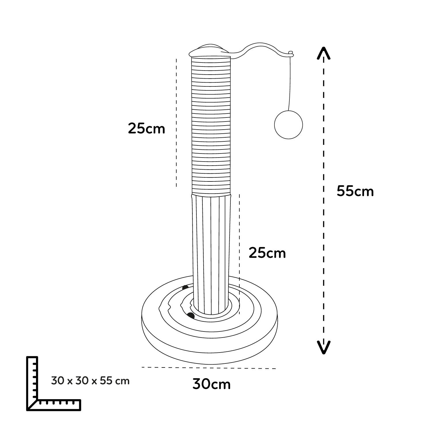 Il tiragraffi a colonna in sisal è ideato per soddisfare le esigenze di ogni felino domestico, mantenendo al contempo un’estetica raffinata e un design intelligente. Questo elegante tiragraffi, con un’altezza di 55 cm, rappresenta la soluzione ideale per chi desidera combinare funzionalità e stile nel proprio ambiente domestico.