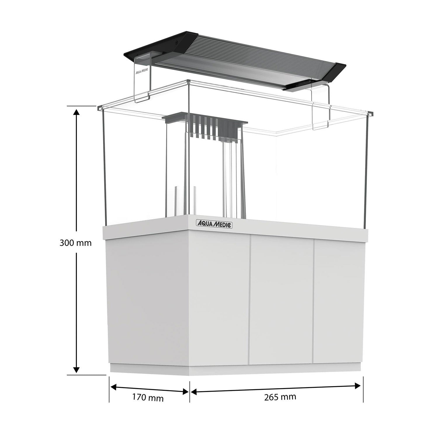 Il mini acquario aquamedic è dotato di illuminazione a LED regolabile con 2 canali di luce (bianco e blu) e possibilità di regolare la luminosità. Questo permette di creare l'atmosfera perfetta per il tuo acquario, stimolando la crescita delle piante e mettendo in risalto la bellezza dei pesci e dei coralli.