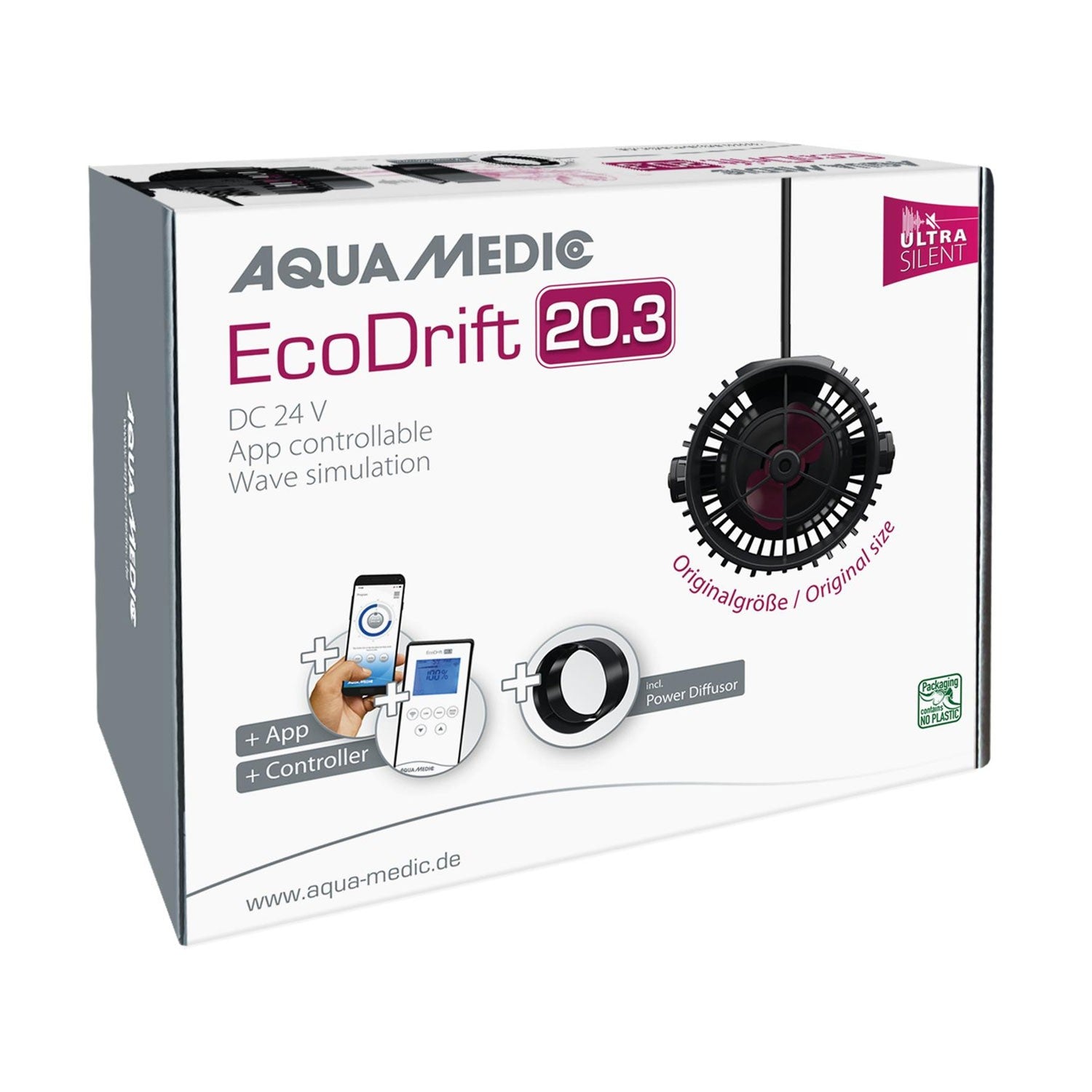 La linea Eco Drift x.3 dell’Aqua Medic, comprende delle pompe di movimento ad alte prestazioni per la regolazione della portata e della frequenza dell'onda. Le pompe sono gestibili tramite apposito controller o controllo tramite app (iTunes e Google Playstore) e sono caratterizzate dalla possibilità di un controllo simultaneo di più pompe. È oltretutto possibile una multiprogrammazione delle pompe tramite master-slave o cross-flow, con diversi programmi di flusso. Grazie al diffusore di potenza plug-on le prestazioni aumentano fino al 10%. Provviste di supporto magnetico con ammortizzatori in gomma antivibranti per un funzionamento super silenzioso.