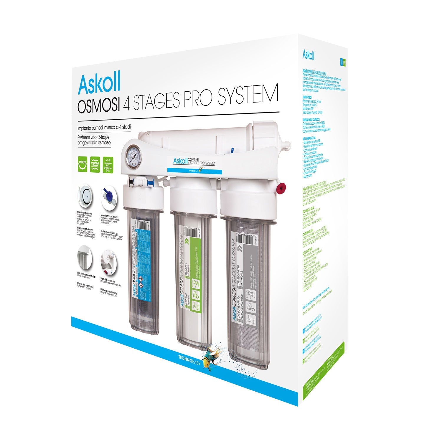 Osmosi 4 Stages Pro System di Askoll è un impianto osmosi inversa a 4 stadi a bicchiere per il trattamento dell’acqua del rubinetto. Ideale per la creazione di acqua osmotica per rabbocchi di acqua evaporata o per trattamenti con sali integratori.
