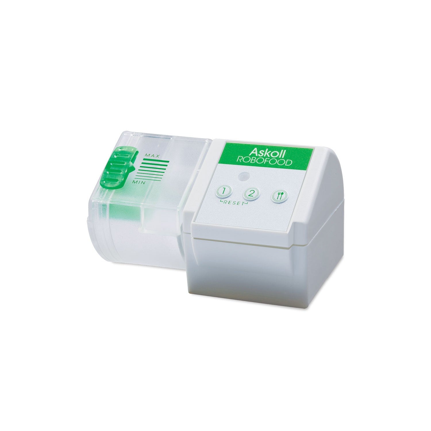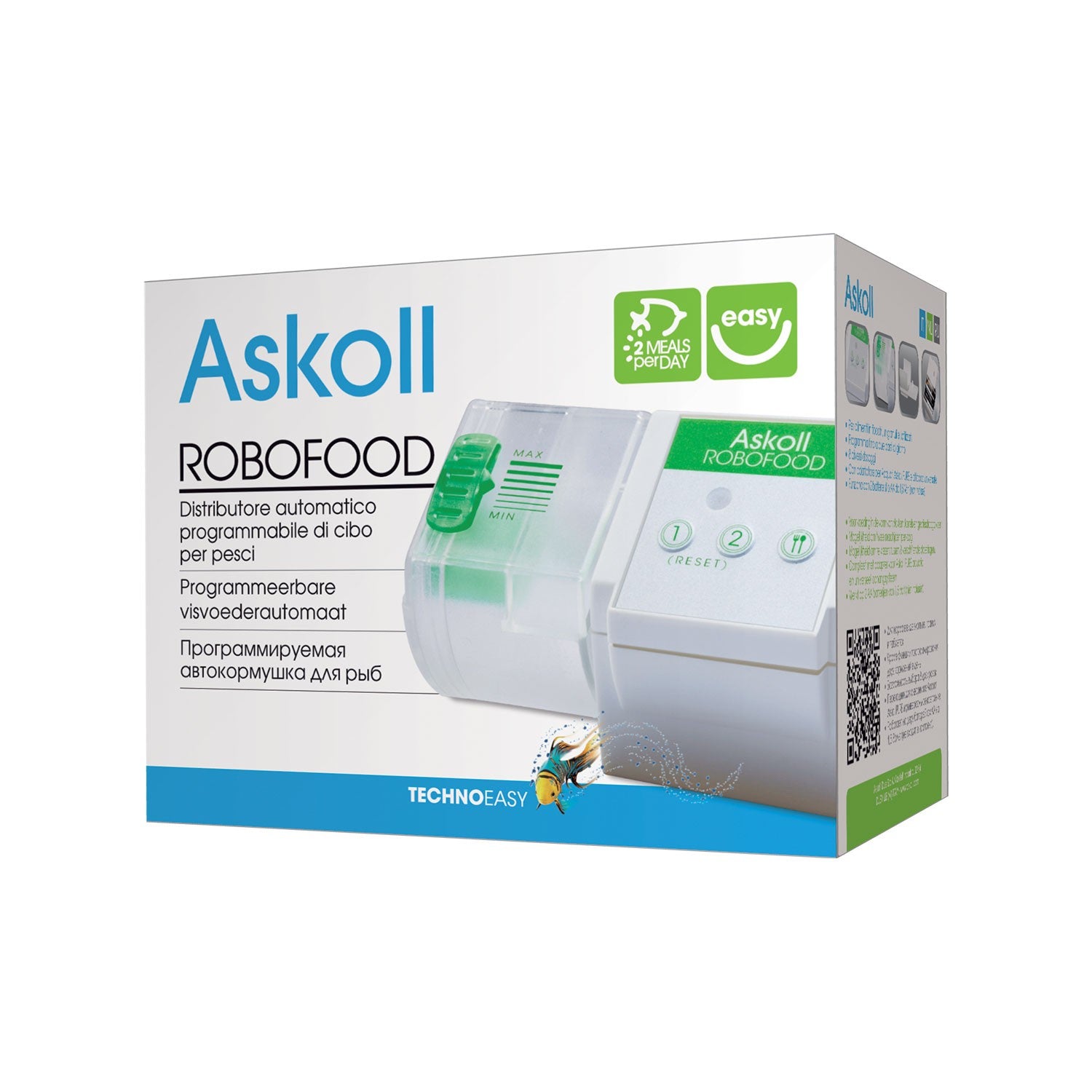 Robofood può essere utilizzato con qualsiasi tipo di acquario e assicura fino a due pasti al giorno per un mese. Incluso adattatore per acquari Askoll Pure.