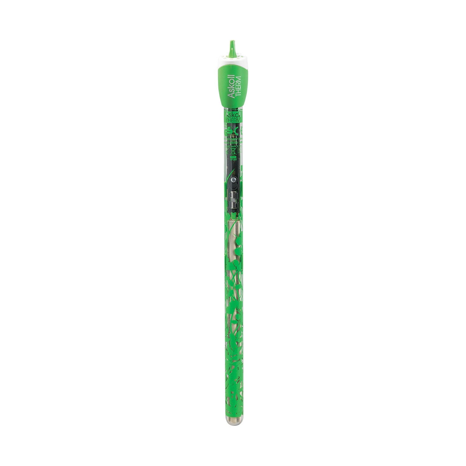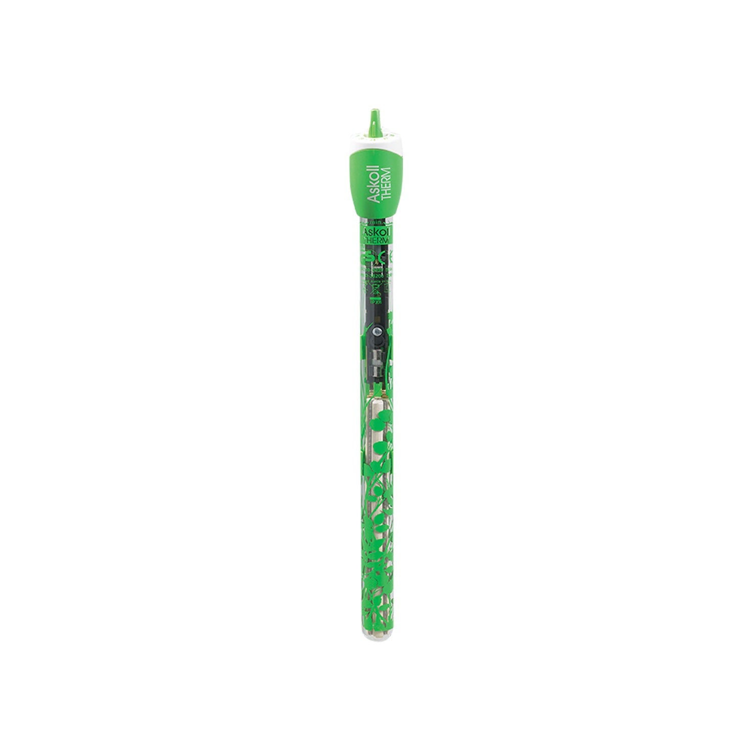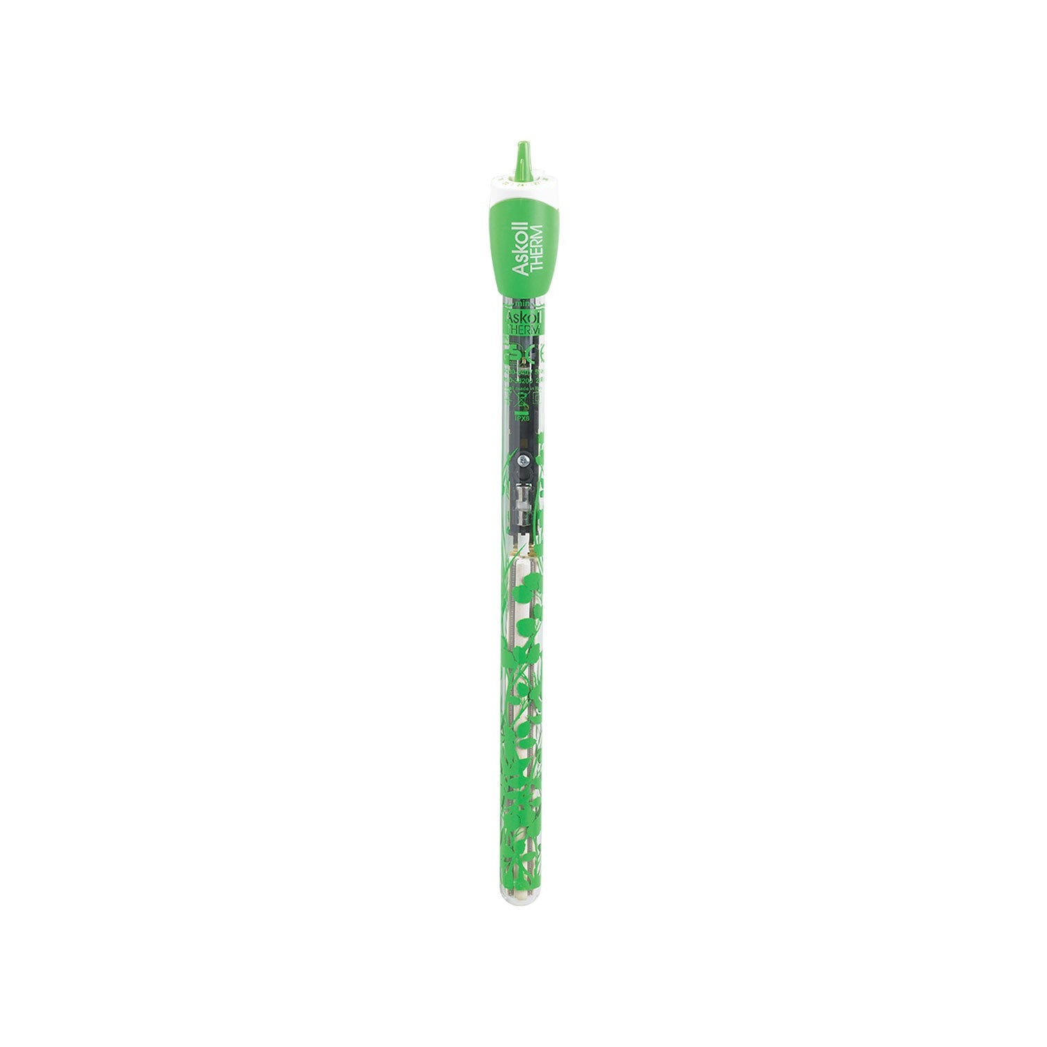 Il termoriscaldatore Askoll Therm è dotato di un decoro verde che si fonde perfettamente con le piante e le decorazioni acquatiche. Questo design non solo migliora l’estetica del tuo acquario, ma garantisce anche che il dispositivo non disturbi il layout naturale. La mimetizzazione aiuta a mantenere un ambiente visivamente armonioso senza compromettere le prestazioni del riscaldatore.