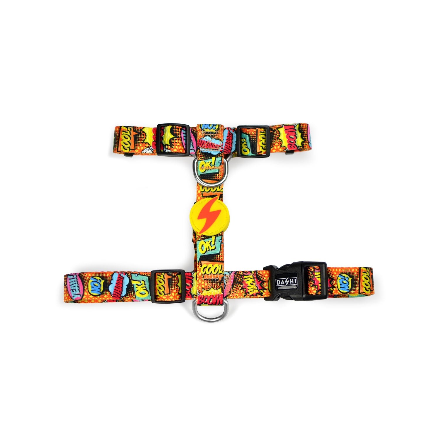 La pettorina ad H Boom, firmata Dashi, è un capo iconico che ridefinisce lo stile classico della pettorina posteriore grazie a una fantastica rivisitazione in stile pop-art. Questa pettorina per cane non è solo un accessorio funzionale per il tuo fedele amico a quattro zampe, ma è anche un elemento di design che lo farà distinguere dagli altri cani con il suo stile unico e alla moda. Disponibile in quattro taglie - extra-small, small, medium, large - la pettorina Boom è progettata per soddisfare le diverse esigenze di cani di tutte le razze e dimensioni.