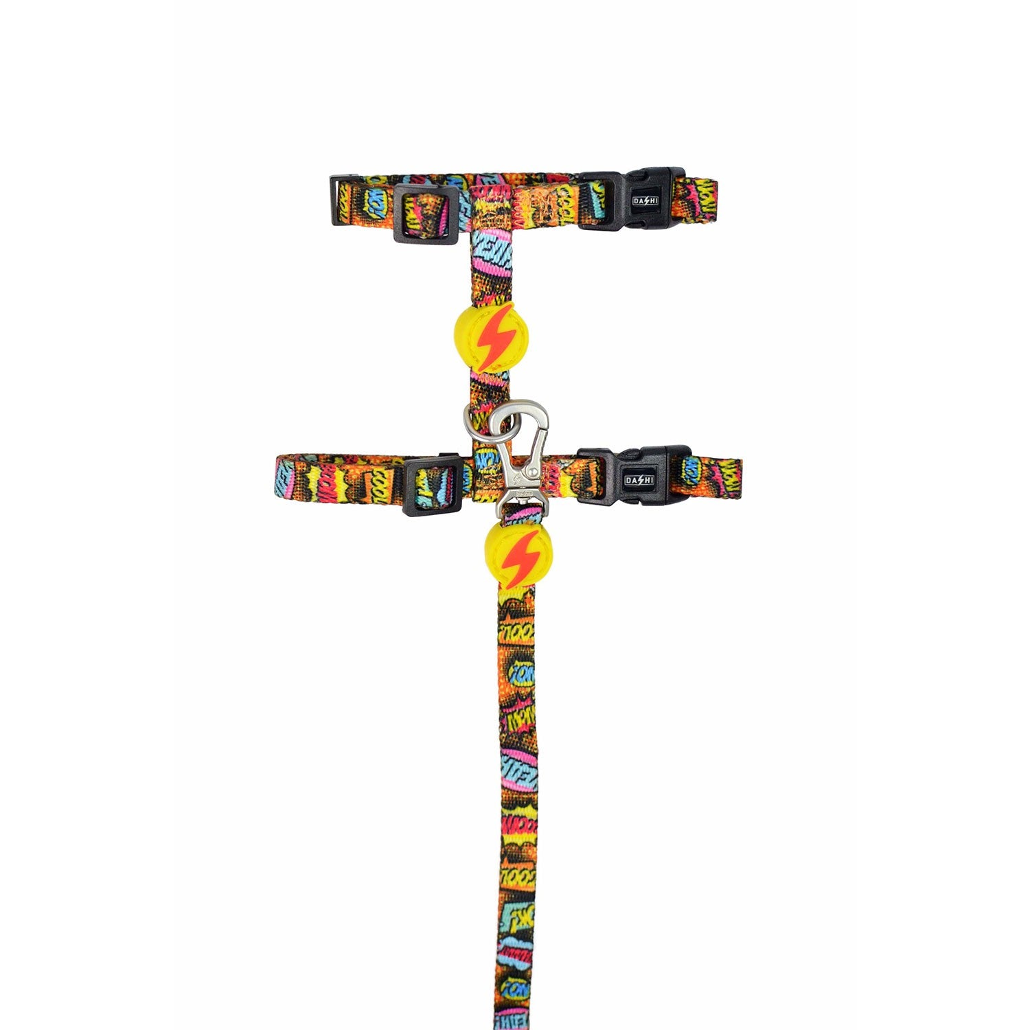 La pettorina per gatti Dashi Boom è il kit perfetto per chi desidera portare a spasso il gatto con stile e comfort. Con il suo design moderno e vivace, caratterizzato da una fantasia pop-art unica, questo set di pettorina e guinzaglio è ideale per divertirse con il proprio animale in modo sicuro e alla moda. Realizzato in resistente poliestere di alta qualità, il kit assicura praticità e sicurezza durante le passeggiate, grazie alla possibilità di regolare la circonferenza sia della vita che del collo del gatto, garantendo una vestibilità comoda e sicura.
