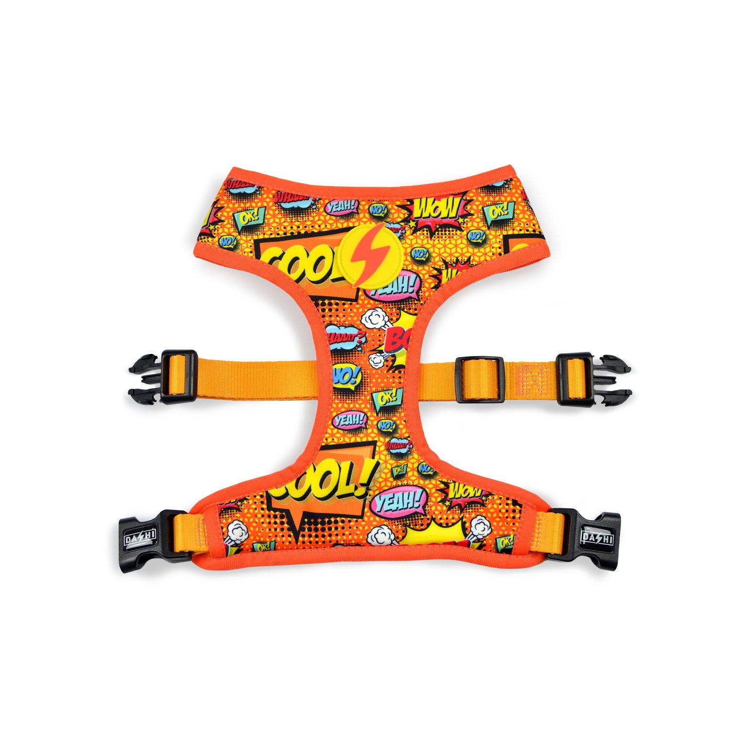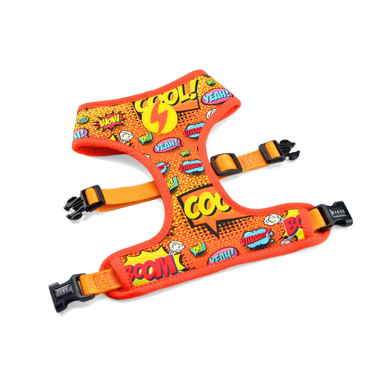 Il modello di pettorina per cane Boom si distingue per la sua fantasia pop-art vibrante e moderna.