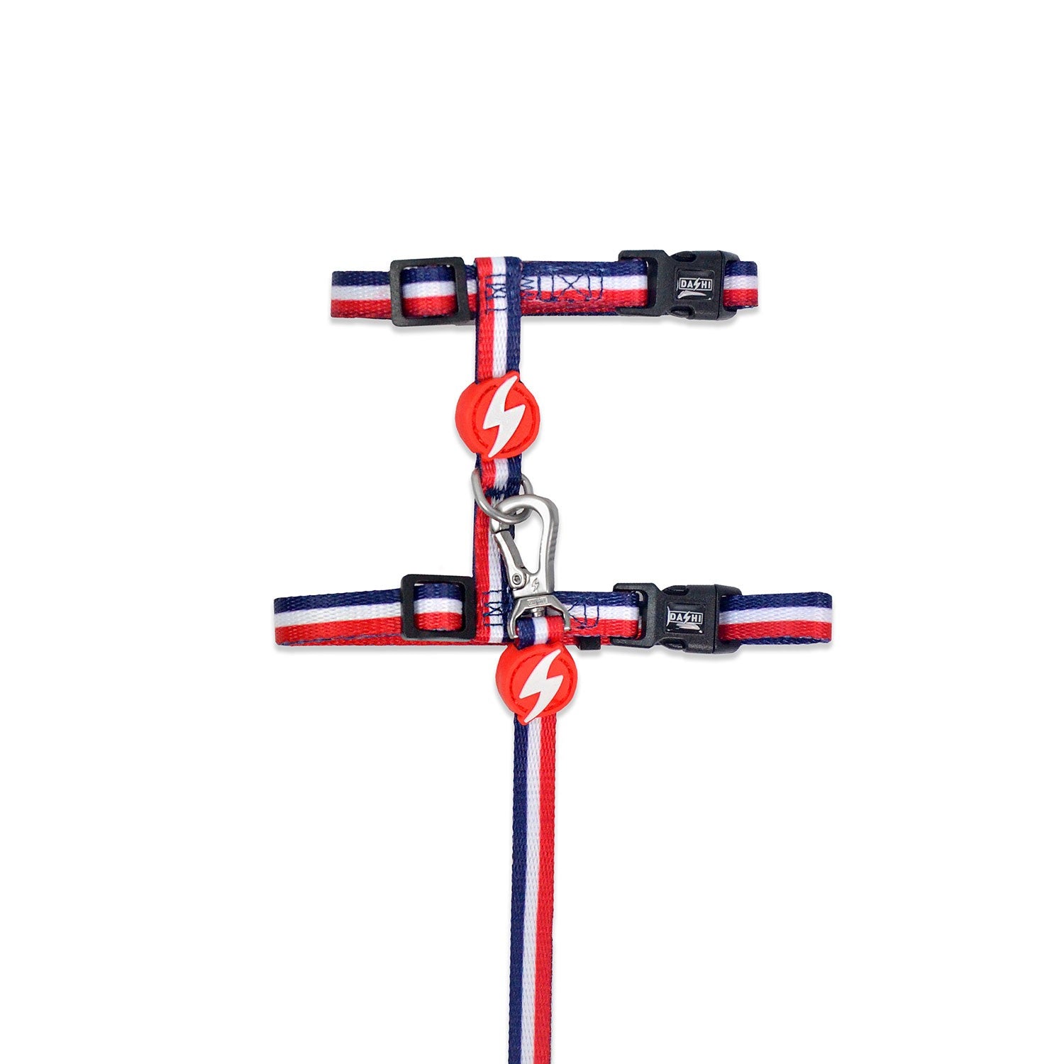 Il kit di pettorina e guinzaglio per gatti di DASHI®, modello Stripes3, dalla fantasia a strisce multi-colore Rosso/Blu, indispensabile per coloro che desiderano portare a spasso il loro amico felino. Il guinzaglio e la pettorina sono realizzati da resistente poliestere di alta qualità con la possibilità di regolare la circonferenza della vita e del collo.
