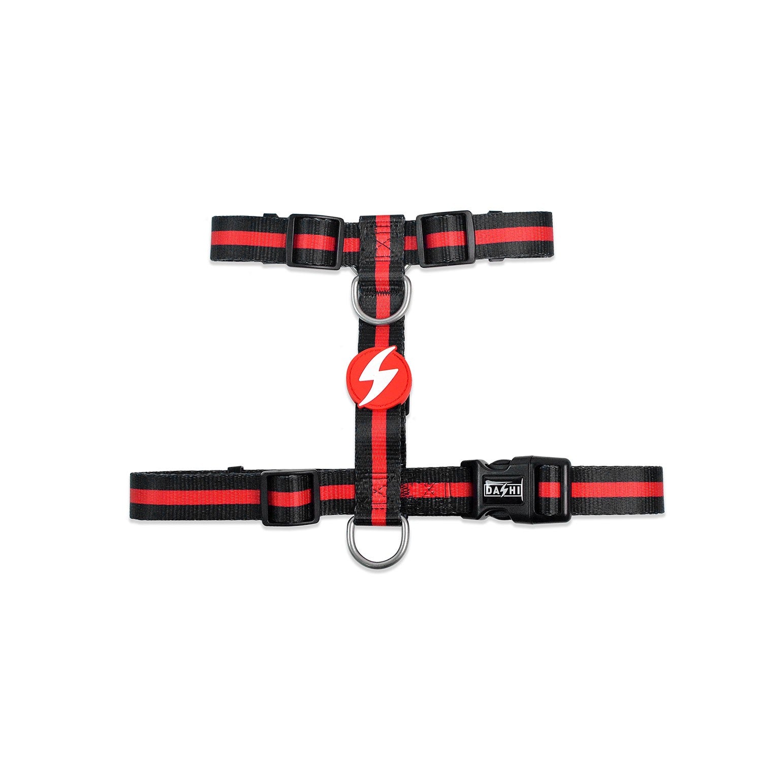 La pettorina ad H, modello Stripes3 Rosso/Nero, targata Dashi, è la classica pettorina ad H posteriore in uno stile completamente nuovo ed originale, caratterizzata da una fantasia a strisce bi-colore per rendere il tuo fido amico il più “cool” della strada. Potete scegliere tra le quattro versioni extra-small, small, medium, large per incontrare le esigenze dei vostri amici animali. E’ composta da poliestere resistente di alta qualità con una fibbia dotata di un sistema di bloccaggio a quattro punti per garantire la massima sicurezza. Caratteristica particolare della pettorina è la presenza di due anelli in metallo sul retro in modo da avere più possibilità di scelta nel posizionamento del guinzaglio.