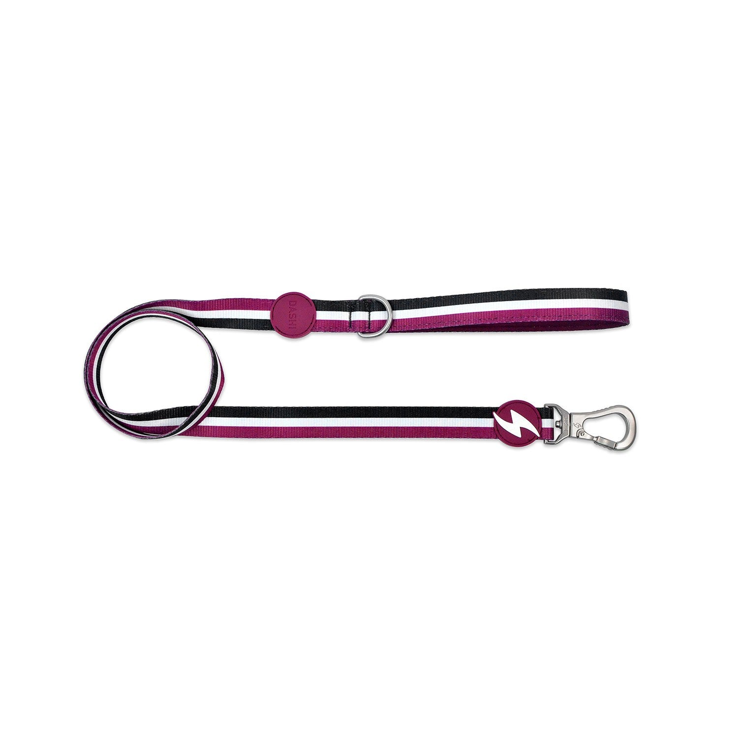 Il guinzaglio Stripes3 Viola/Nero, targato Dashi, è il guinzaglio dal design originale ed innovativo, caratterizzato da una fantasia a strisce multi-colore per rendere unico nello stile il vostro amico a 4 zampe durante le vostre passeggiate e non solo. Potete scegliere tra le quattro versioni extra-small,small,medium,large per incontrare un gusto più moderno e da vero "street-styler", insieme alle esigenze di tutti i vostri amici pelosi, dai più cuccioli o piccoli a quelli più adulti o grandi. E' composto da poliestere resistente di alta qualità con uno strato di neoprene internamente al manico per un tocco più morbido e confortevole. L'anello di metallo, in vicinanza del manico, permette di agganciare comodamente dispenser per sacchettini igienici. Caratteristica esclusiva del guinzaglio è il gancio a 360° con un blocco brevettato che permette un aggancio in sicurezza più veloce e resistente di qualsiasi altro prodotto sul mercato.