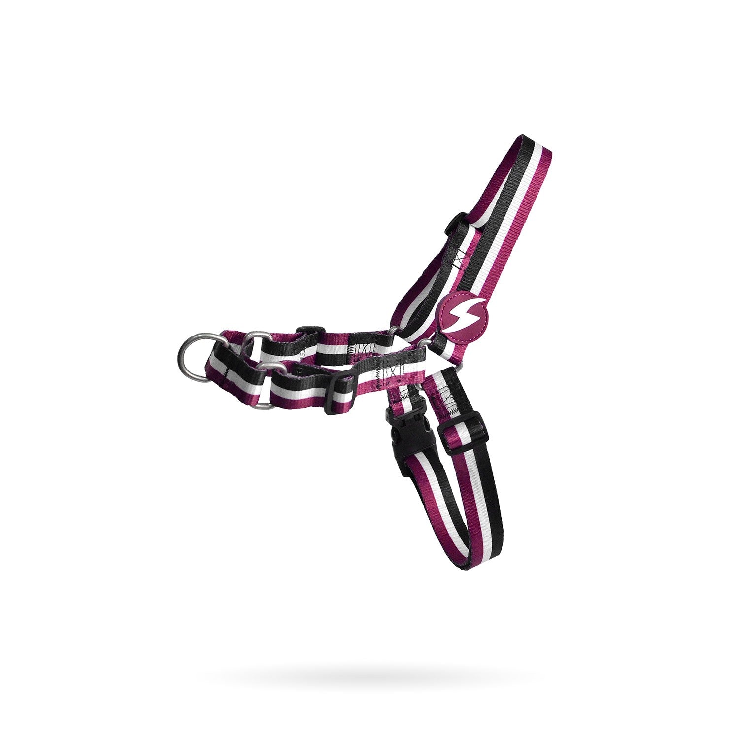 La pettorina frontale, modello Stripes3 Viola/Nero, targata Dashi, è l’innovativa pettorina anteriore in uno stile completamente nuovo ed originale, caratterizzata da una fantasia a strisce multi-colore per rendere il tuo fido amico il più “cool” della strada. Potete scegliere tra le tre versioni small, medium, large per incontrare le esigenze dei vostri amici animali. E’ composta da poliestere resistente di alta qualità con una fibbia dotata di un sistema di bloccaggio a quattro punti per garantire la massima sicurezza. Caratteristica particolare della pettorina è la presenza di un anello in metallo per l’attacco del guinzaglio sulla parte anteriore così da rendere più semplice il controllo del vostro cane, anche con quelli abbastanza vivaci.