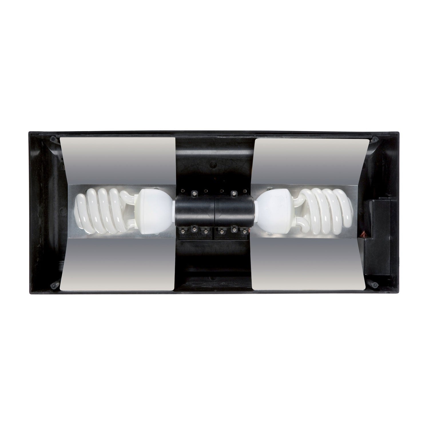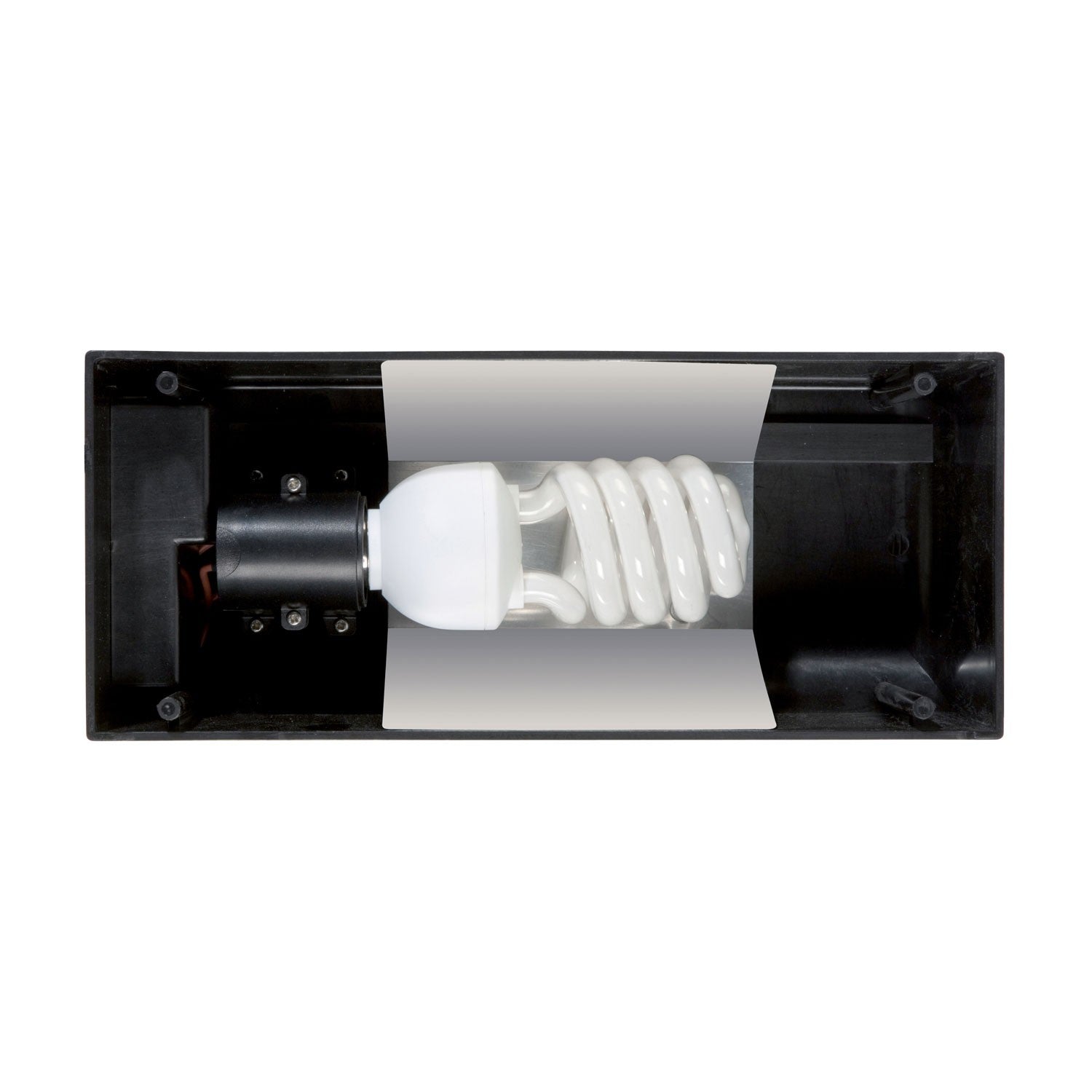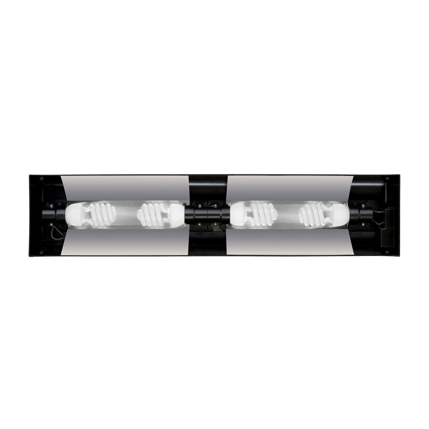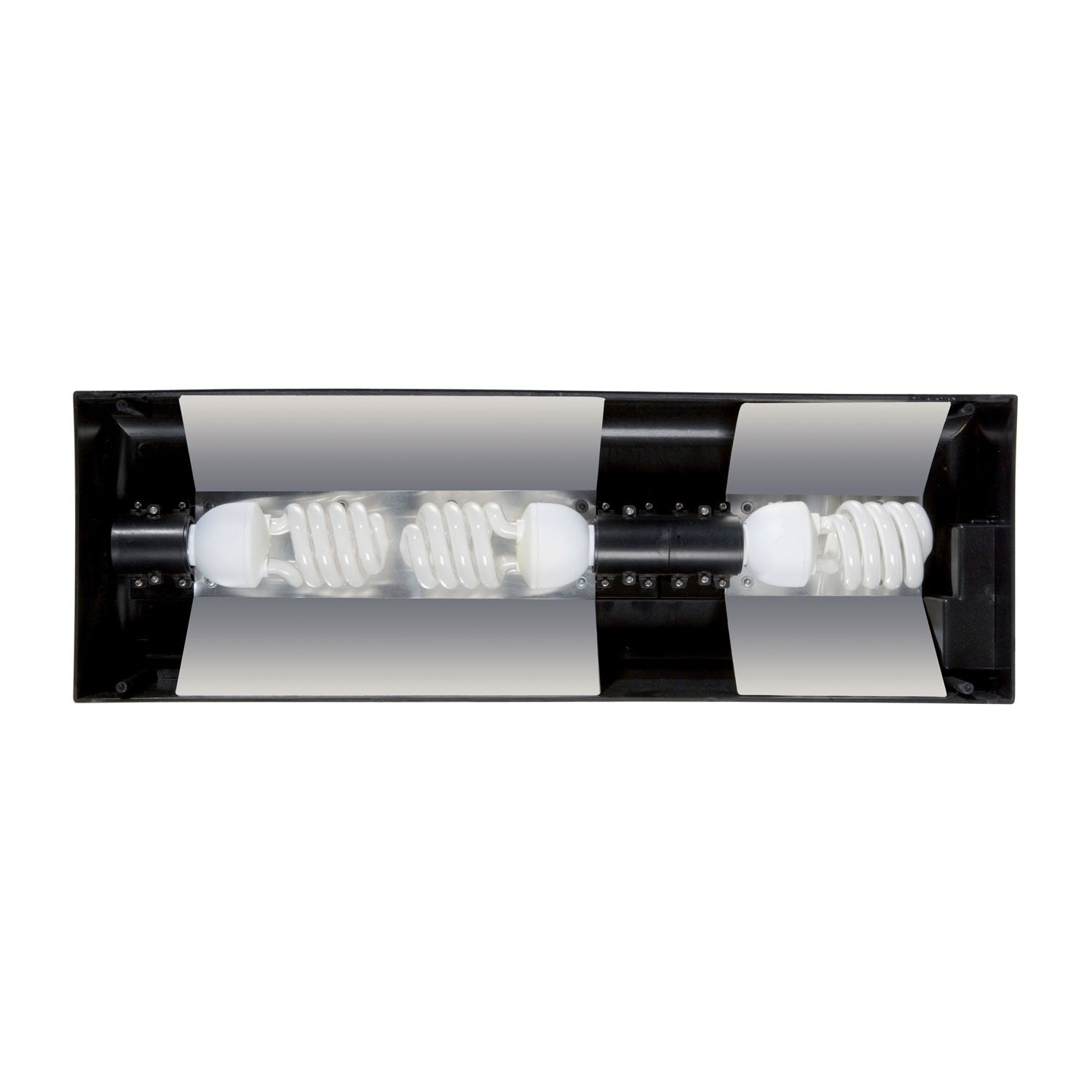 La Exoterra Compact Fluorescent Terrarium Canopy è una plafoniera sviluppata specificatamente per la gamma dei terrari di vetro Exoterra. Prevede un coperchio che si installa facilmente e possiede quattro dispositivi per le lampade compatte fluorescenti o per le lampade ad incandescenza fino a 26 W. Si può usare, inoltre, una combinazione di lampade Exoterra Repti Glo per creare il rapporto luce ultravioletta/luce visibile per ogni specifico rettile. Infine, nell'apposito bordo scorrevole del coperchio, si possono posizionare gli accessori (opzionali) come il termometro e l’igrometro l'Exoterra.