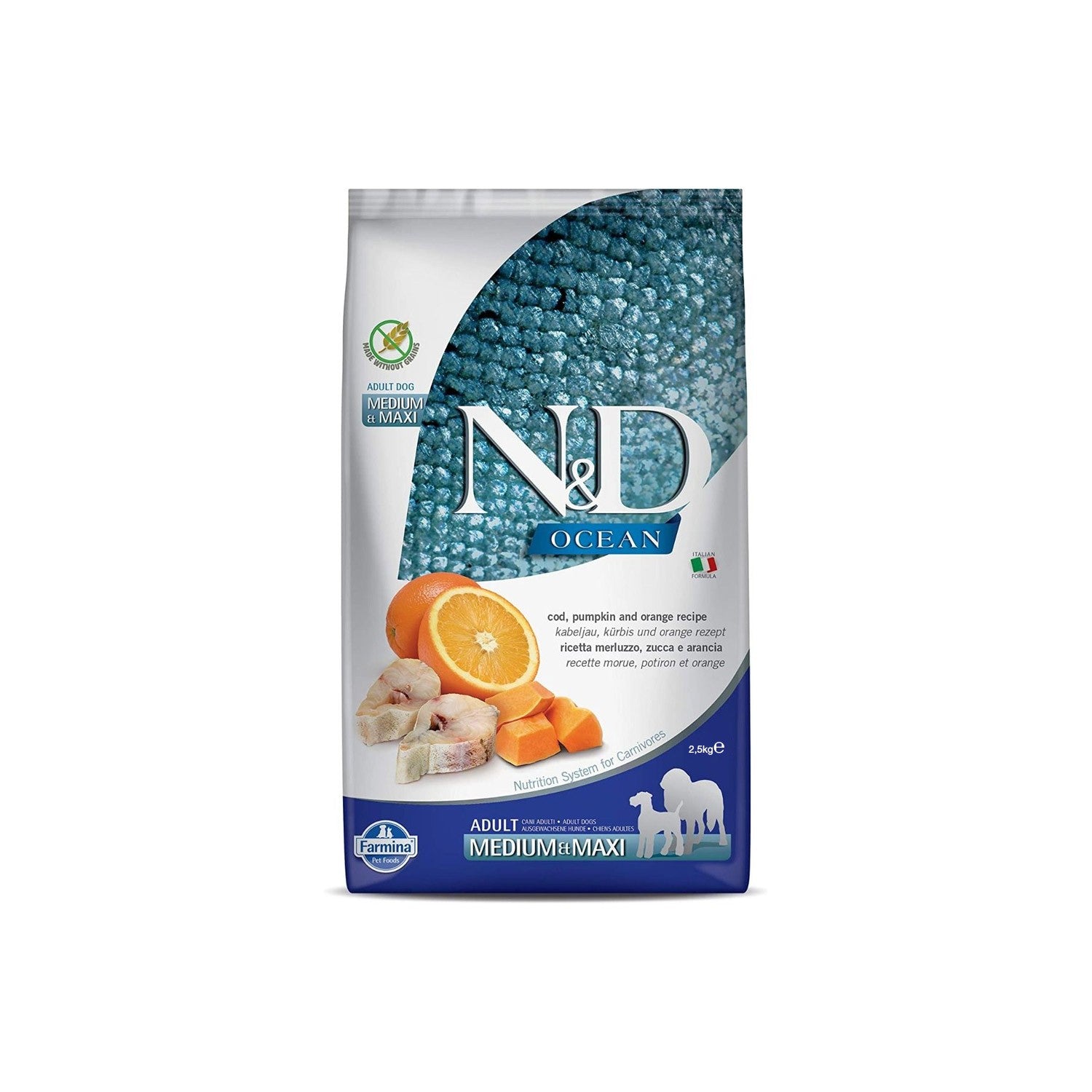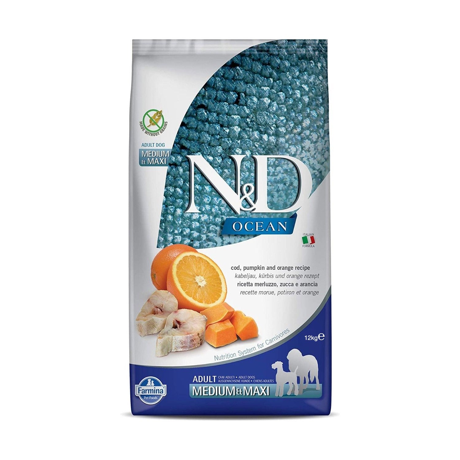 Alimento completo per cani adulti di taglia media e grande, con ingredienti di prima qualità come merluzzo fresco zucca e arancia.