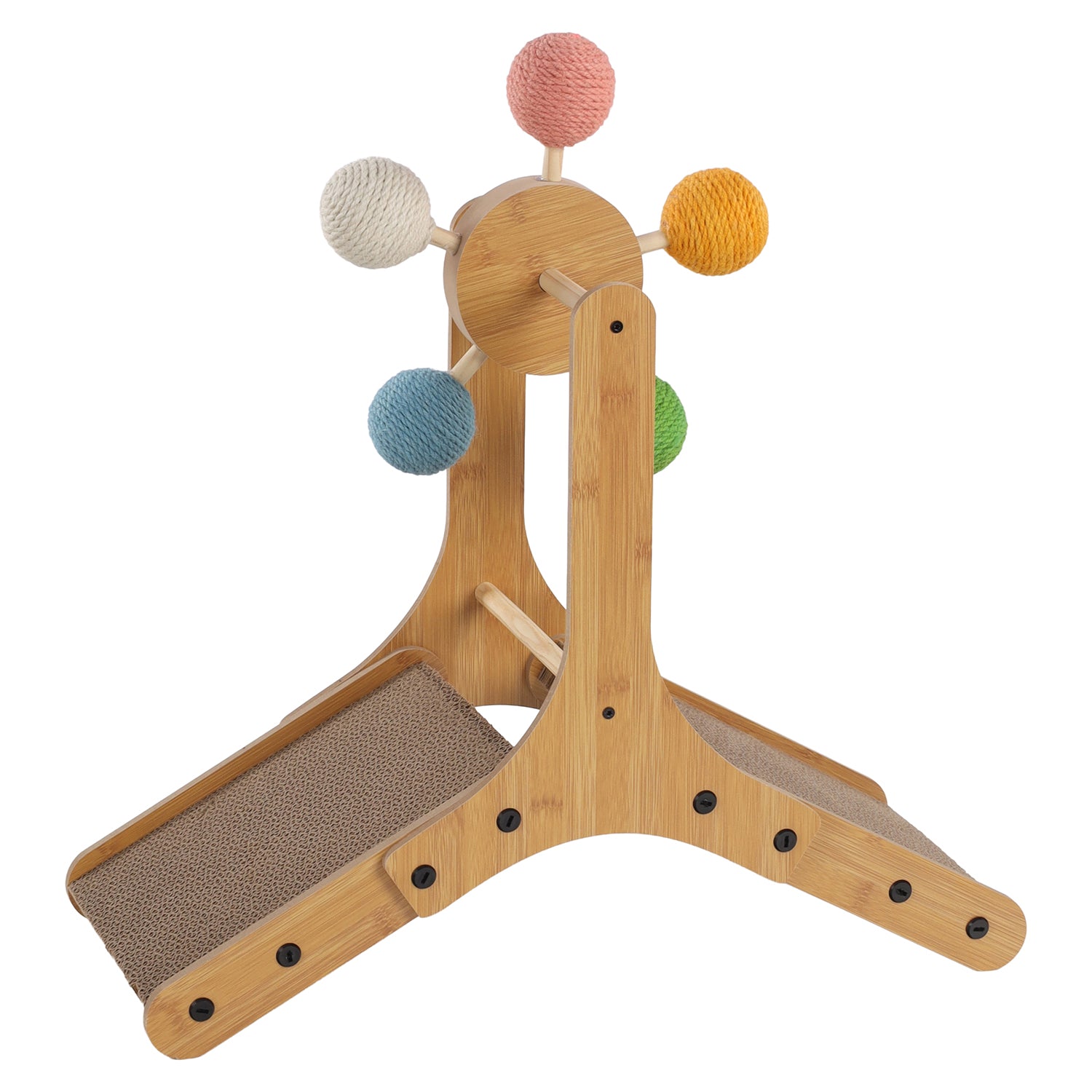 Offre un’area dedicata al gioco grazie alle palline di sisal e al sacchetto di erba gatta, che attirano il gatto e ne promuovono l’attività.