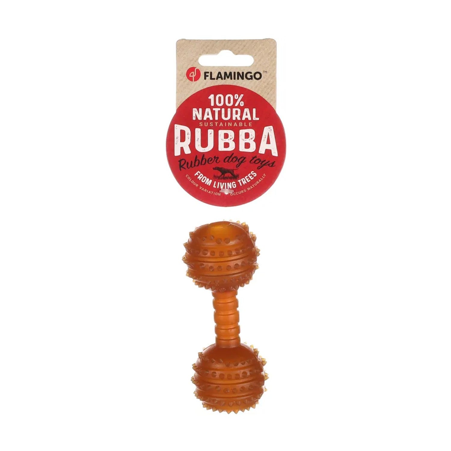 Rubba è un manubrio in gomma per cani targato Flamingo, adatto a cani di tutte le taglie ed età. Composto da gomma 100% naturale di altissima qualità, con delle punte per la cura dei denti del cane durante la masticazione, prevenendo la placca e massaggiando le gengive.