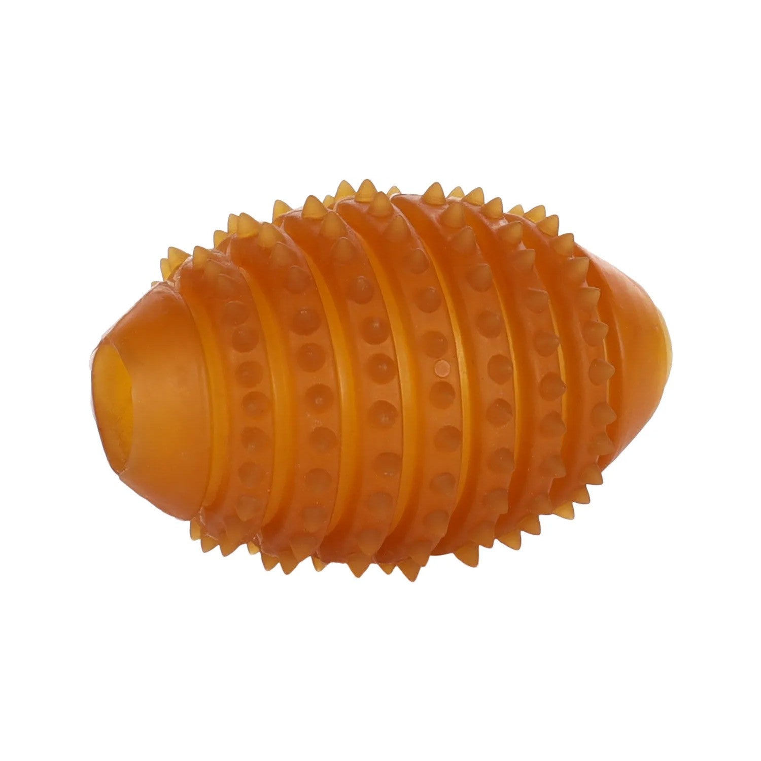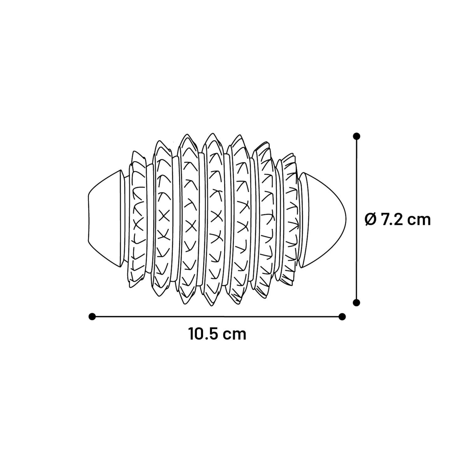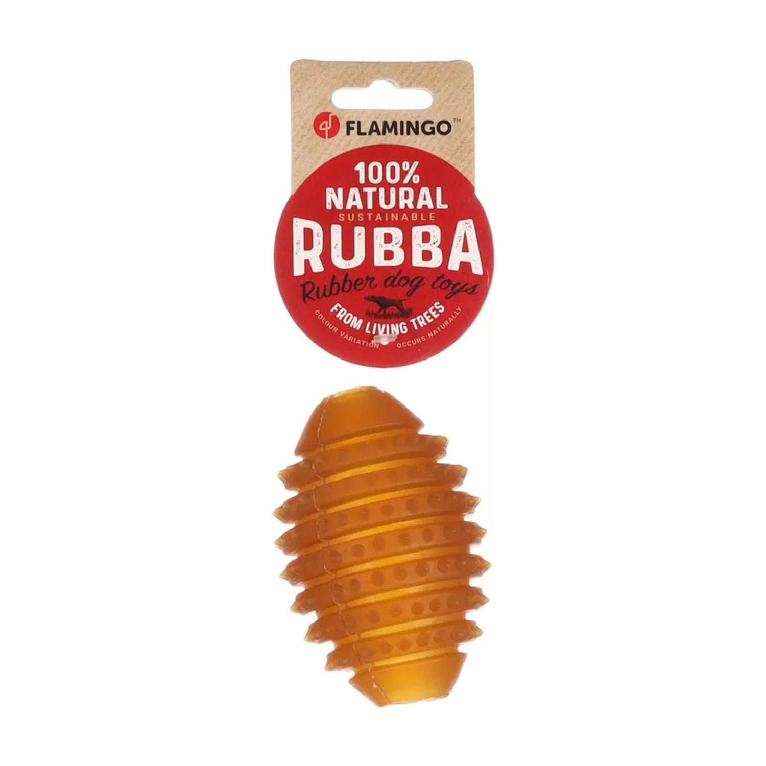 Rubba è una palla da rgby in gomma per cani targato Flamingo, adatto a cani di tutte le taglie ed età. Composto da gomma 100% naturale di altissima qualità, possiede una forma ovale tipica delle palle da rugby, accessoriata di punte che massaggiano le gengive e prevengono la placca. Inoltre, è corredata di fori dove poter inserire crocchette e biscottini, così da intrattenere ancora di più il vostro amico a quattro zampe