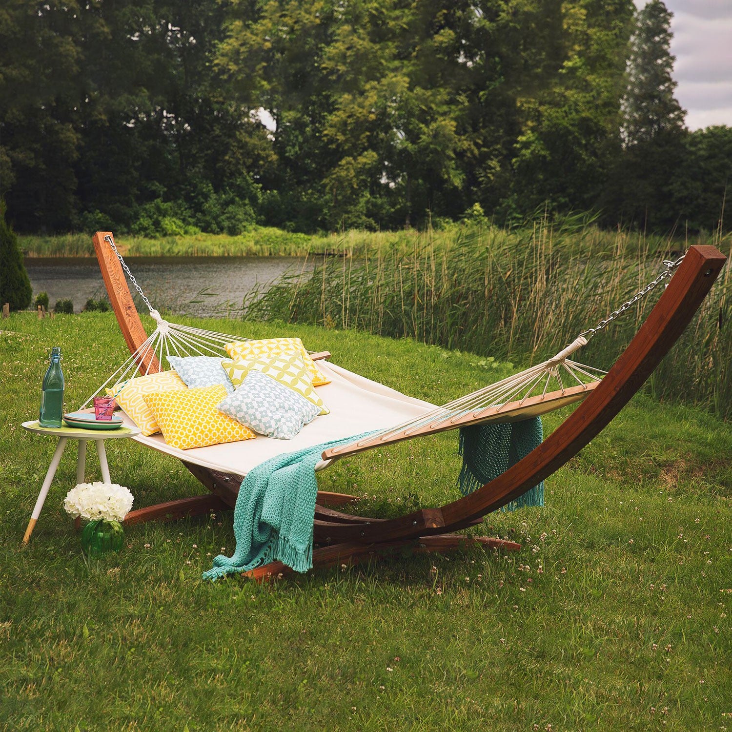 L'amaca matrimoniale in legno Flur è il complemento perfetto per il tuo spazio esterno.
