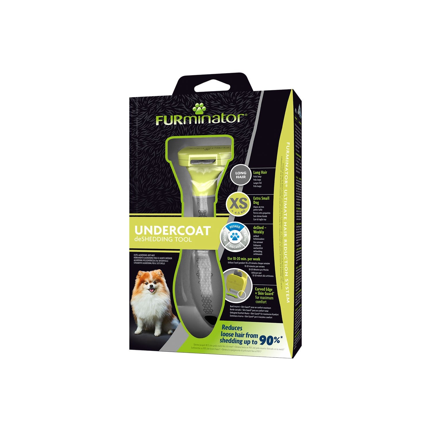 Strumento di deShedding FURminator per cani a pelo lungo, ideale per rimuovere il pelo del vostro cane direttamente dal sottopelo. Riduce lo spargimento di peli fino al 90%. Da usare 1 o 2 volte a settimana, da 10 a 20 minuti alla volta, sul pelo asciutto.
