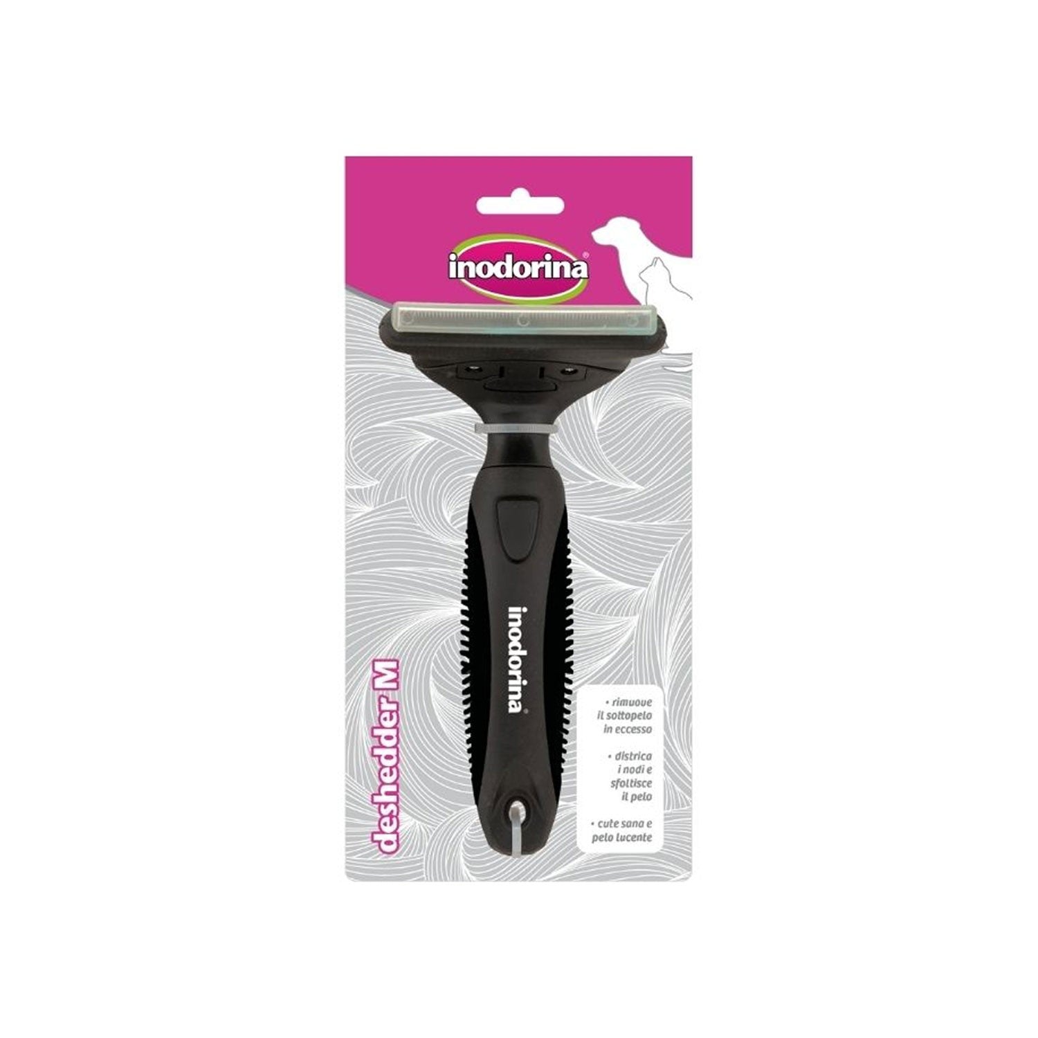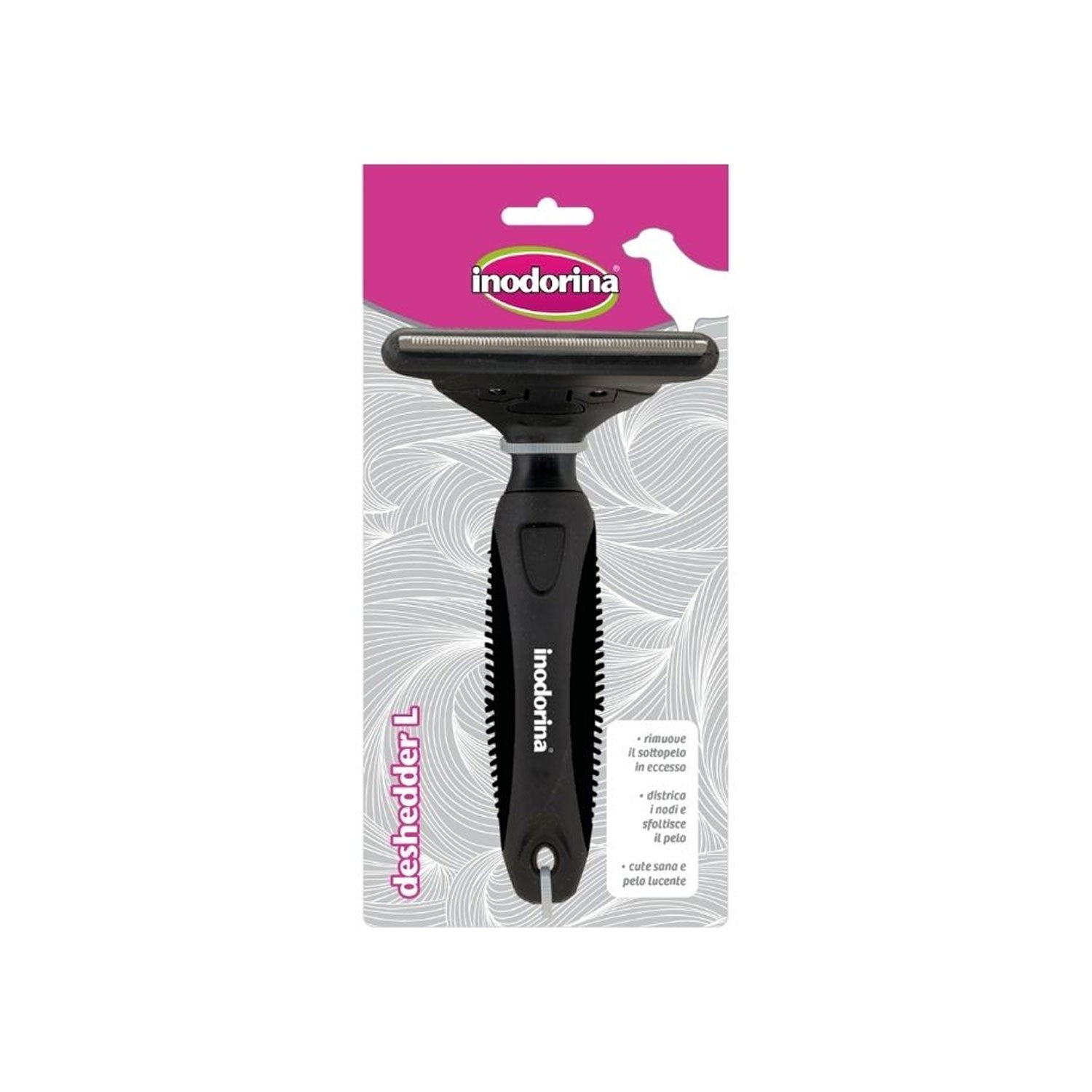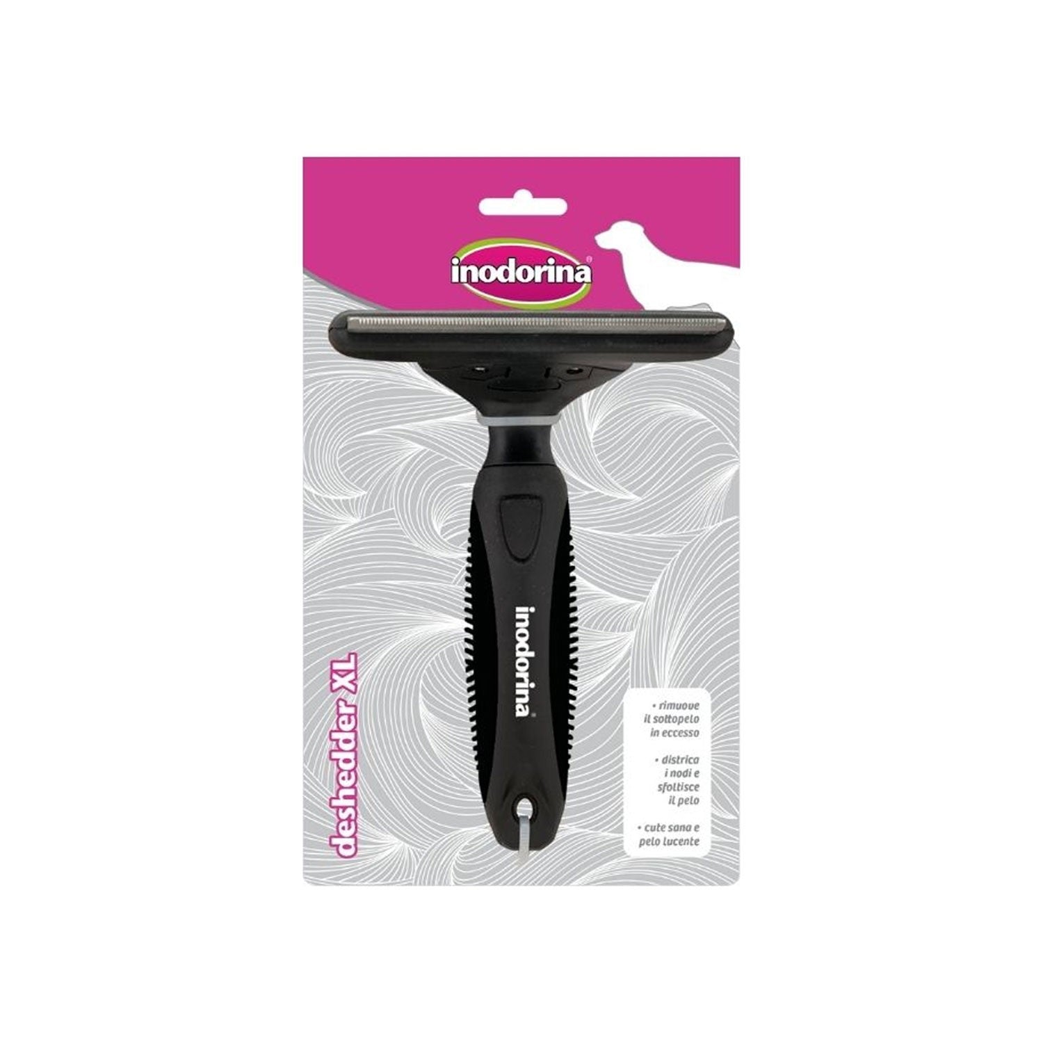 La spazzola per toelettatura Inodorina Deshedder è la scelta ideale per prendersi cura del pelo del tuo cane in modo efficace. Grazie alla sua tecnologia avanzata, questa spazzola aiuta a rimuovere, districare e sfoltire il pelo del tuo amico a quattro zampe, migliorando non solo l'aspetto ma anche la sua igiene. Il risultato? Un pelo più lucido, sano e meno problematico da gestire, con meno peli sparsi in casa.