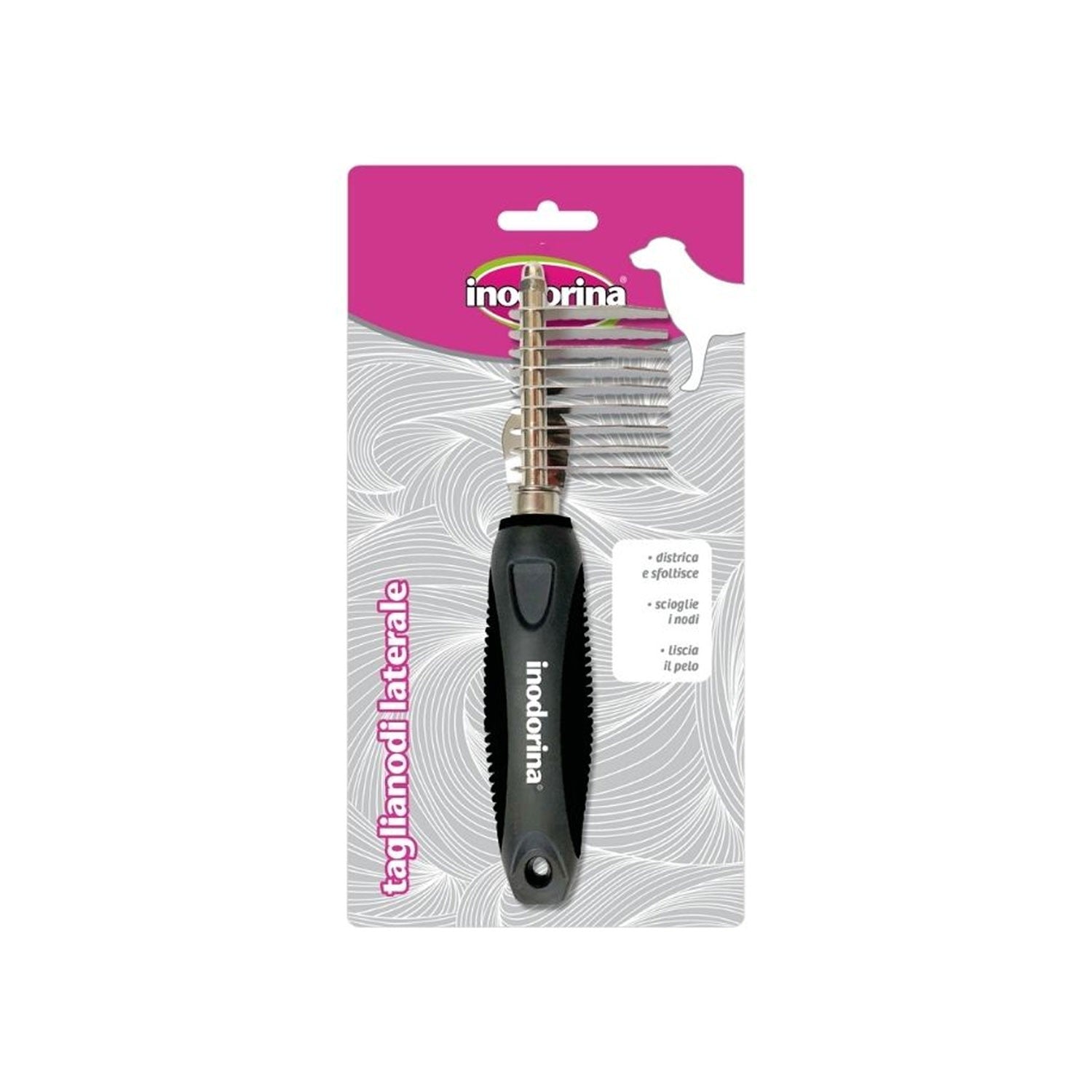 Il taglianodi per cane Inodorina è l'accessorio ideale per districare, sfoltire e lisciare il pelo del tuo amico a 4 zampe. Perfetto per rimuovere nodi e peli più duri, garantisce una cura efficace del pelo, migliorando il benessere del cane. Grazie al suo design pratico e funzionale, rende la toelettatura più semplice e confortevole per il tuo cane, anche con peli lunghi