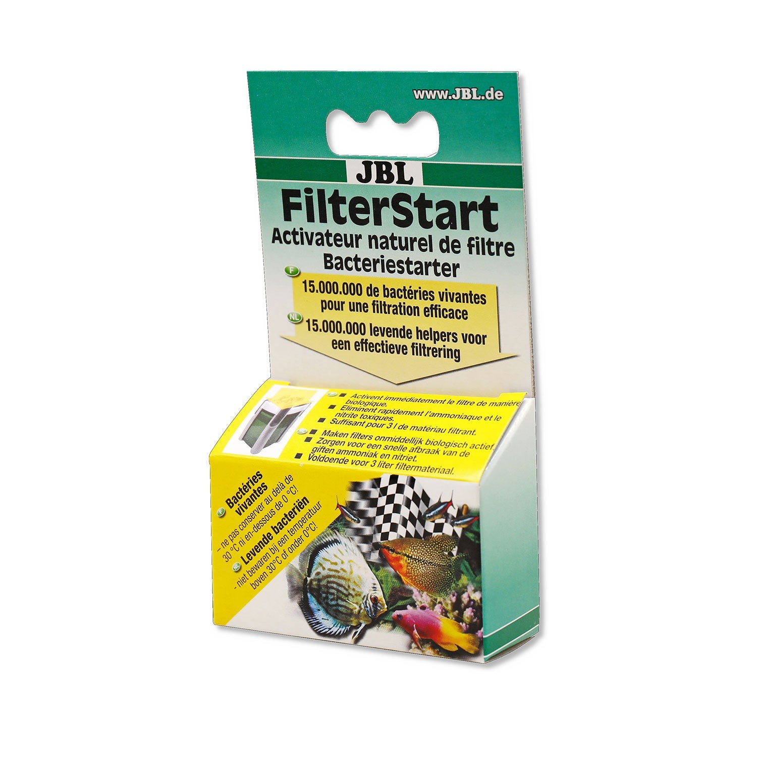 FilertStart di JBL è un prodotto liquido composto da batteri per l'attivazione di filtri nuovi e ripuliti per acquari d'acqua dolce e marina.