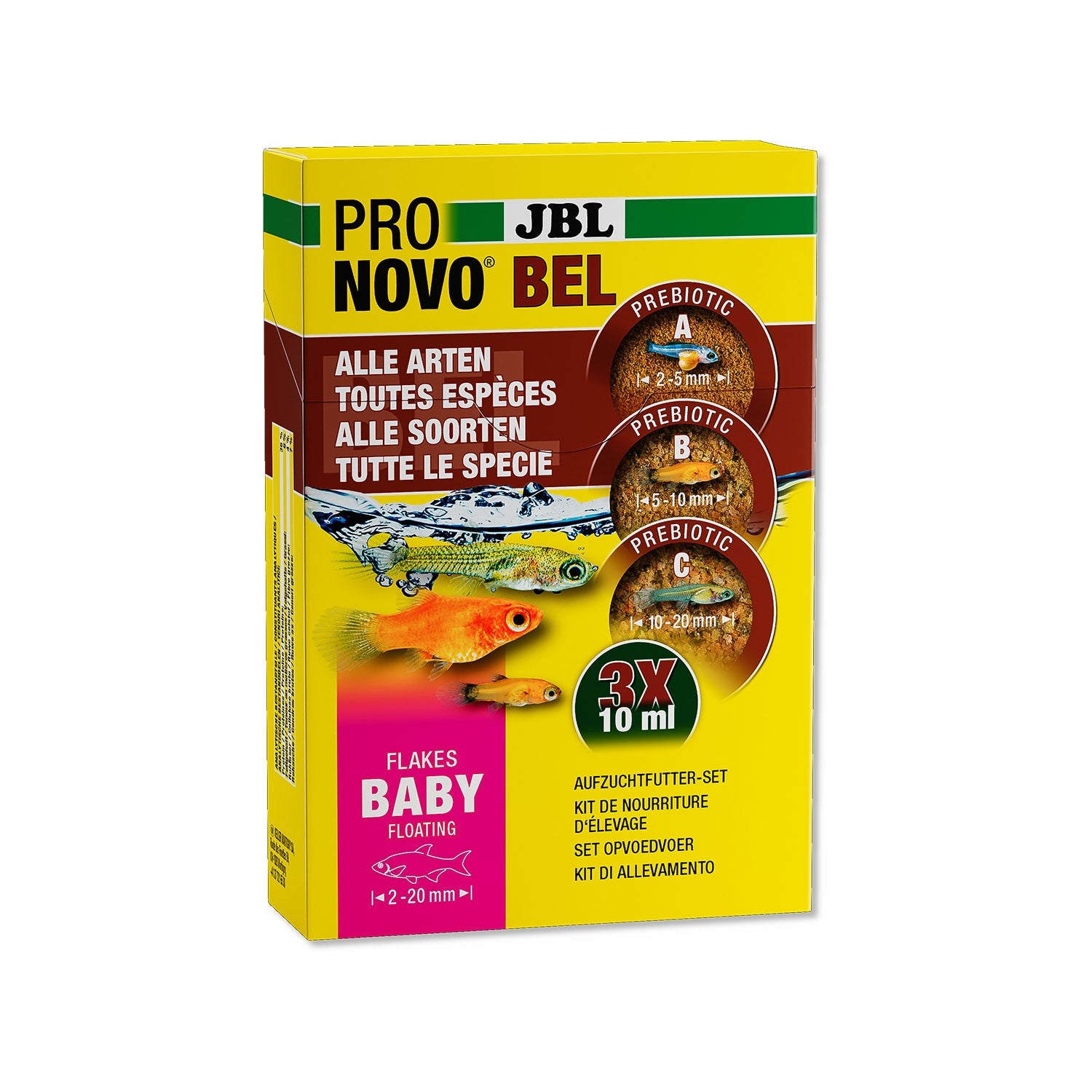 PRONOVO Bel Flakes Baby di JBL è un kit di mangime prebiotico per l'allevamento di avannotti di pesci d'acquario vivipari.