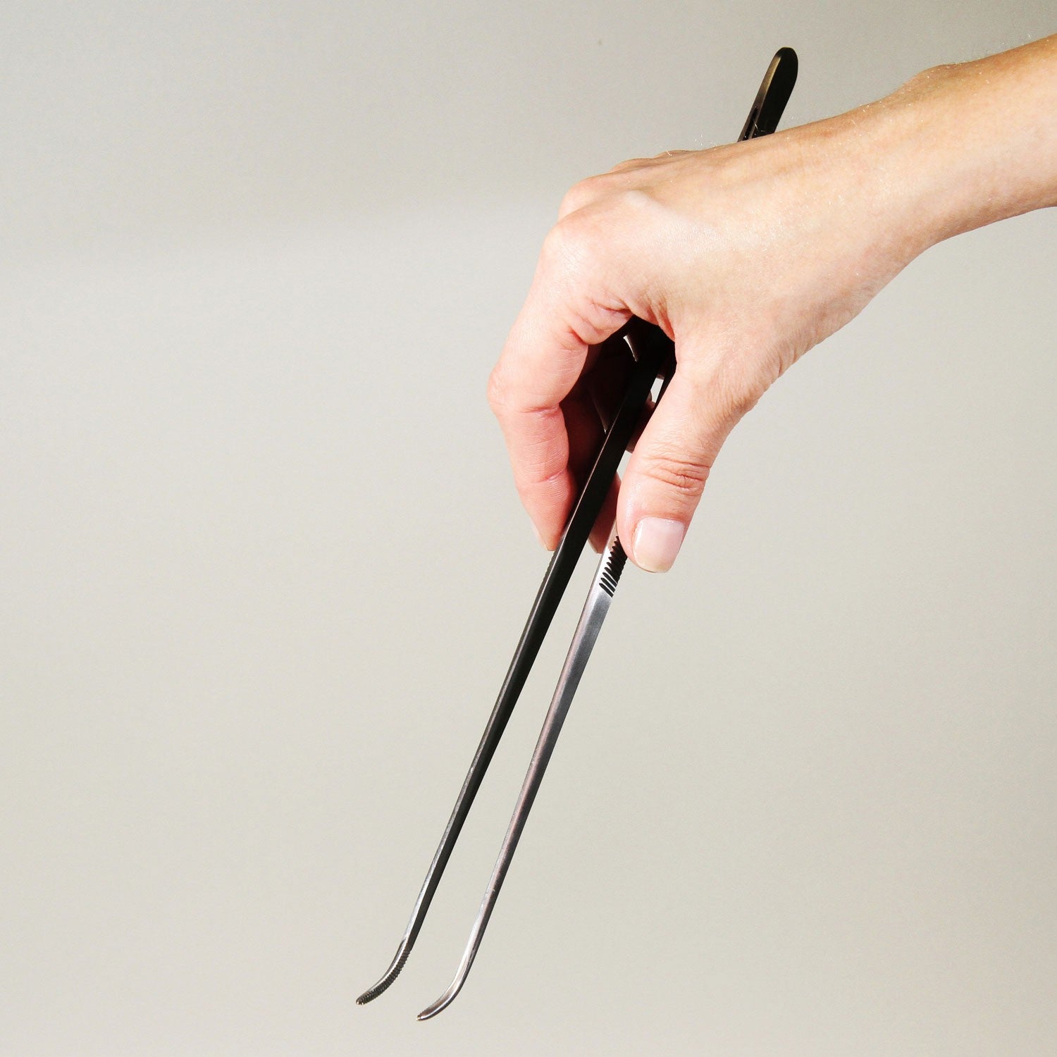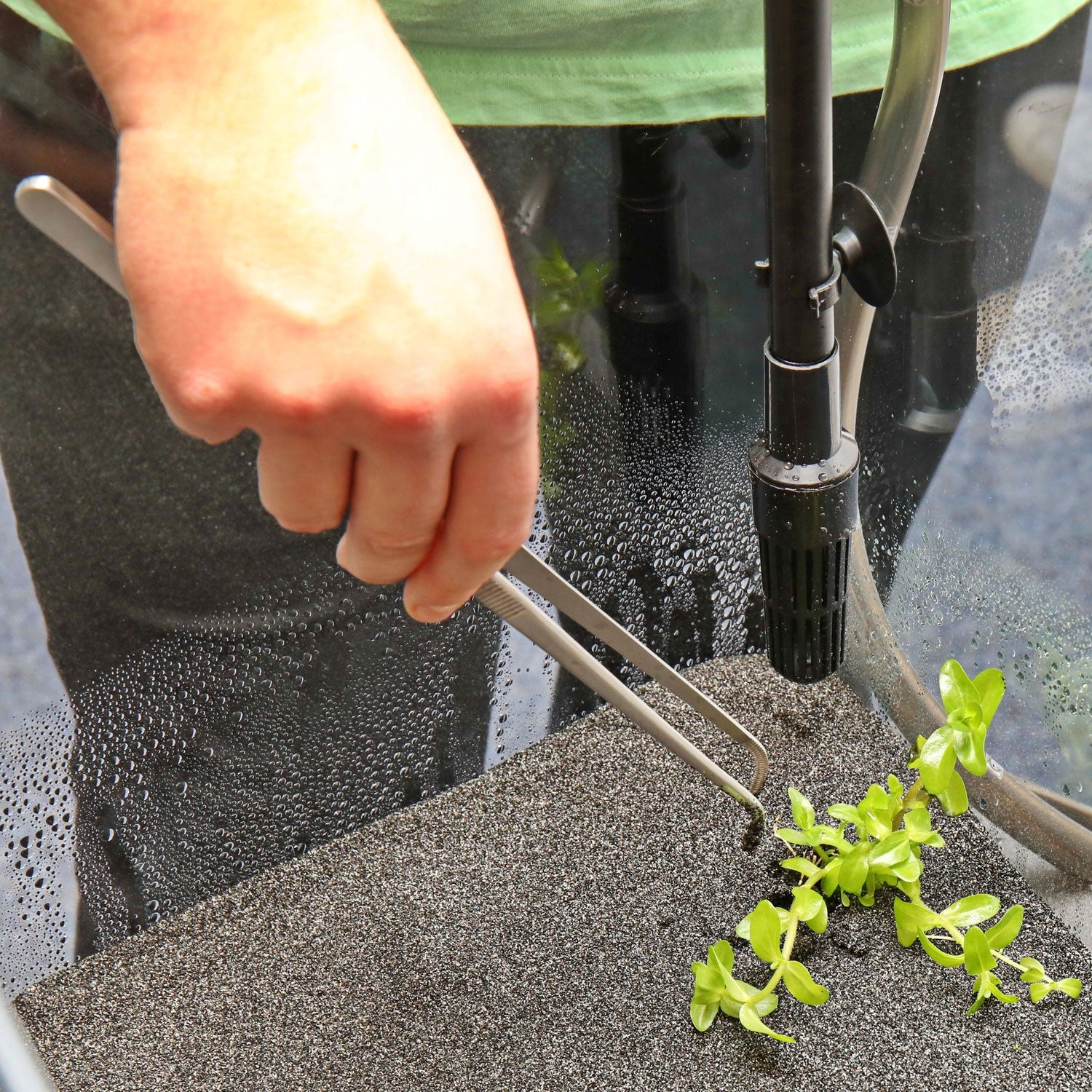 Le pinze lunghe sono particolarmente adatte per l’inserimento delle piante. La singola pianta si inserisce spesso con le pinze diritte, mentre un gruppo di piante è più facile da inserire usando una pinza curva.