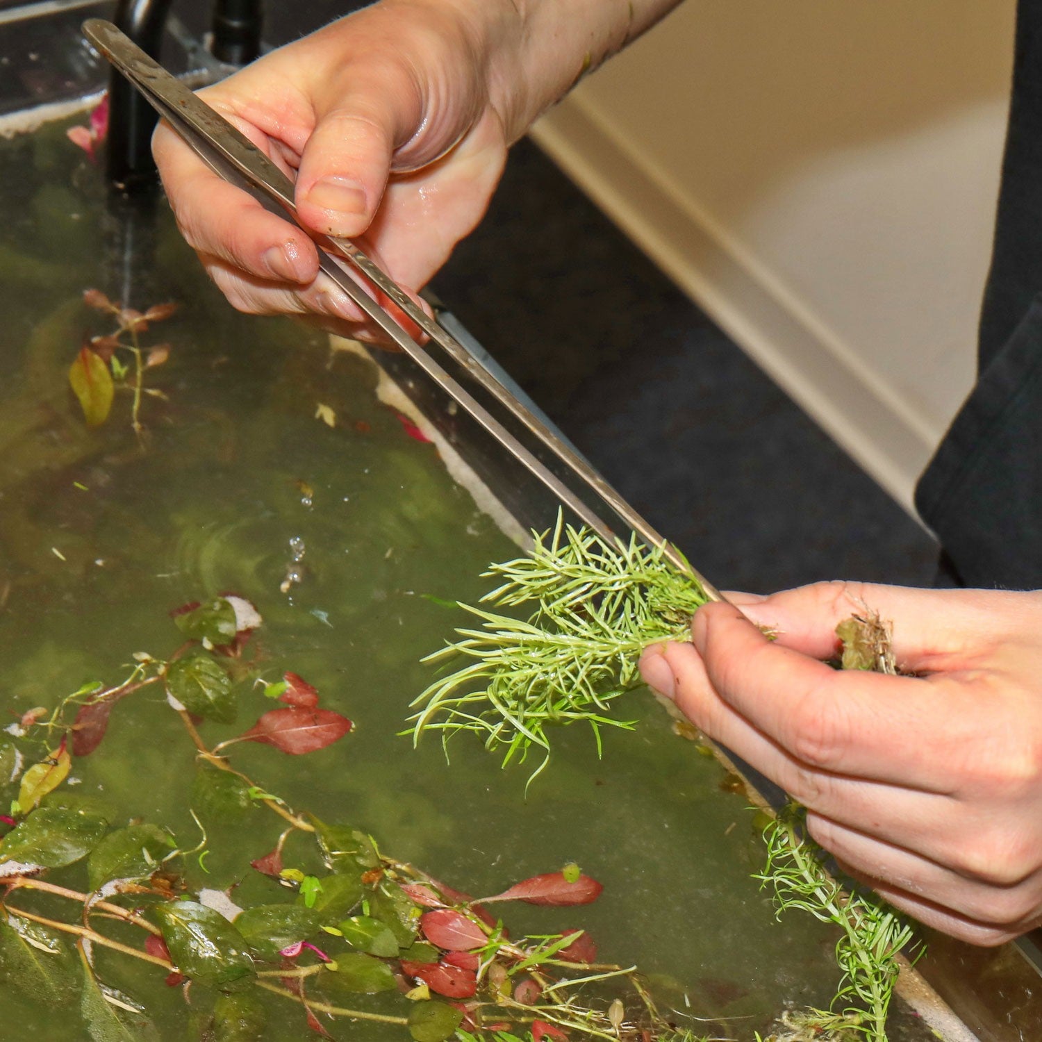 Per le piante che vanno inserite profondamente nel suolo è adattissima questa pinza snella e diritta. Meglio di qualsiasi forbice, questa pinza è adatta per togliere la lana di roccia dalle lunghe radici della pianta in vitro.