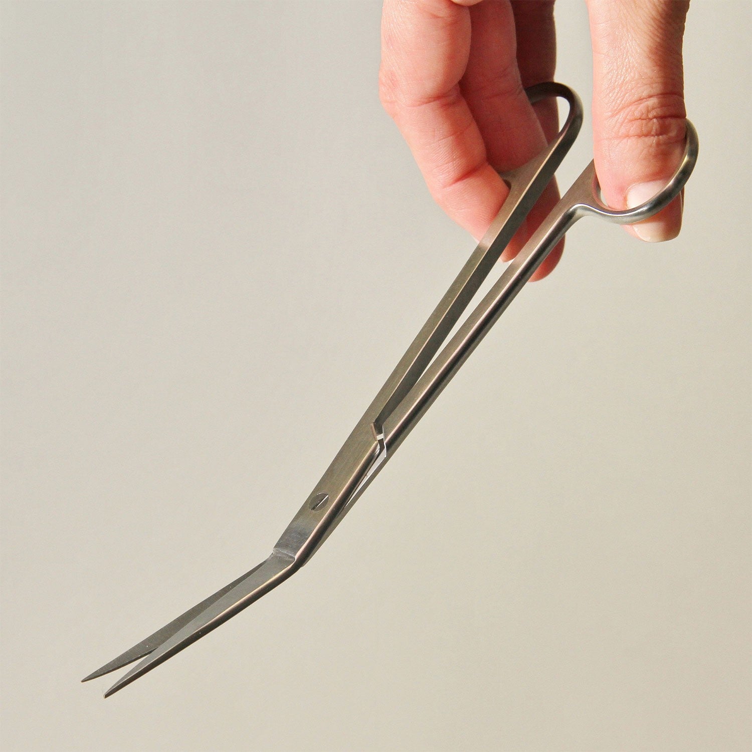 La forbice angolare serve specialmente per rimuovere le foglie dall’acquario. Le foglie vanno tagliate il più possibile vicino alla loro base.