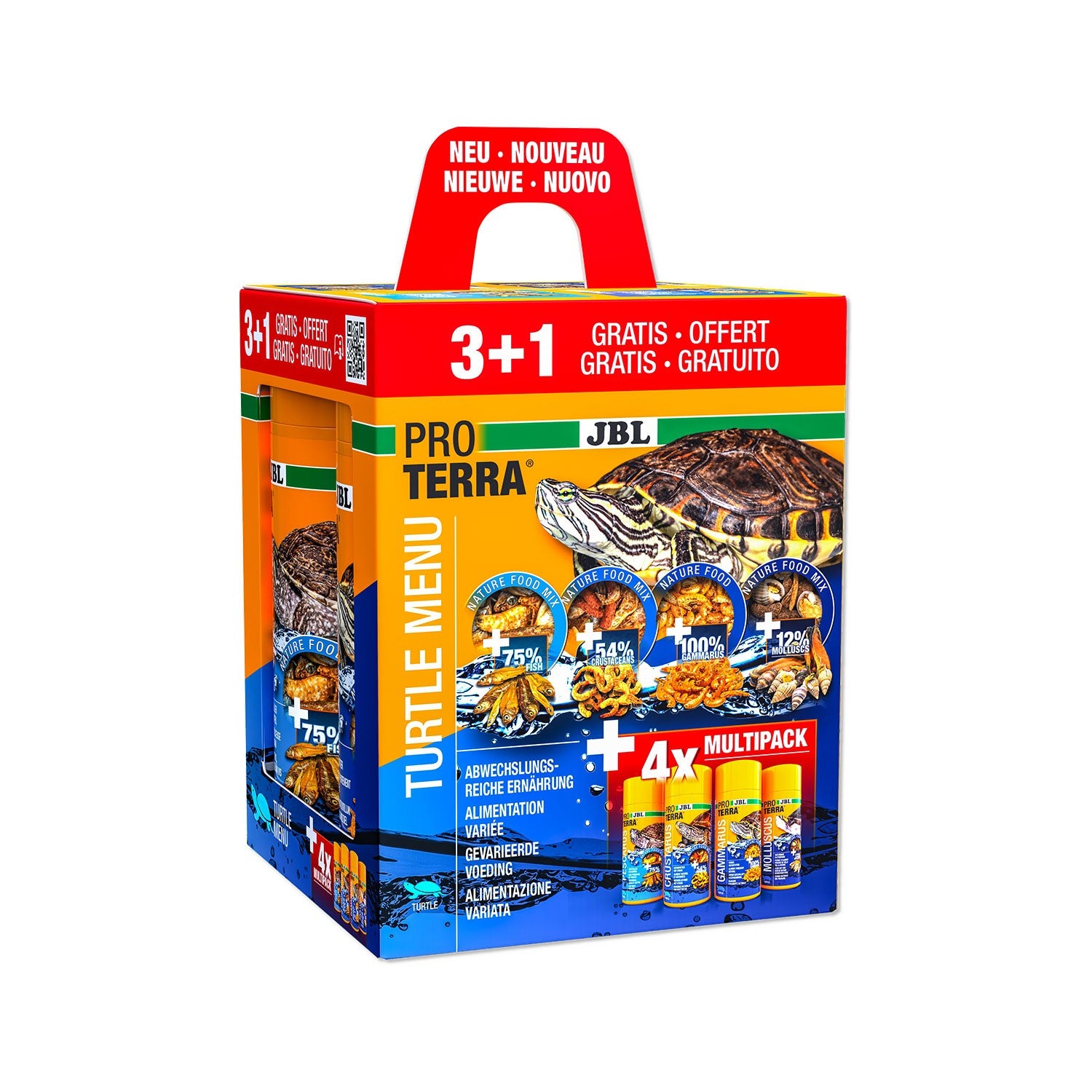 Il JBL Proterra Turtle Menu è particolarmente indicato come set introduttivo per i nuovi proprietari di tartarughe o per chi vuole esplorare le preferenze alimentari del proprio animale. Grazie alla varietà di mangimi offerti, è possibile testare quale tra questi il tuo animale predilige, per poi decidere se acquistare formati più grandi dei singoli prodotti.