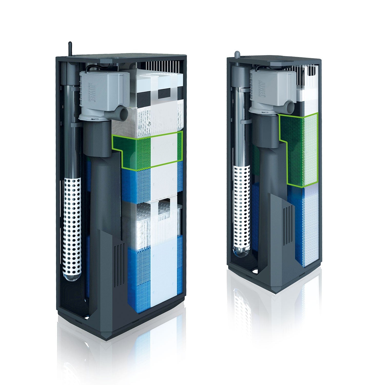 Tutti gli abitanti dell’acquario dovrebbero sentirsi a proprio agio nell’ambiente che si è creato per loro. Oltre a nutrire e fertilizzare le piante acquatiche, ciò include anche la pulizia e regolari cambi parziali dell'acqua. L'utilizzo di un buon filtro interno, con annessi elementi filtranti, assicura che l'acqua del tuo acquario sia sempre pulita e favorisce la colonizzazione di batteri utili.