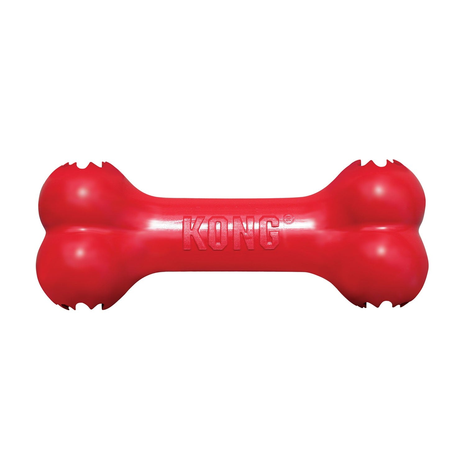 Kong Goodie Bone è il gioco dalla caratteristica forma di osso e, dall'esclusiva formula in gomma rossa 100% naturale Made in Usa, per stimolare il gioco e il divertimento del cane masticando.