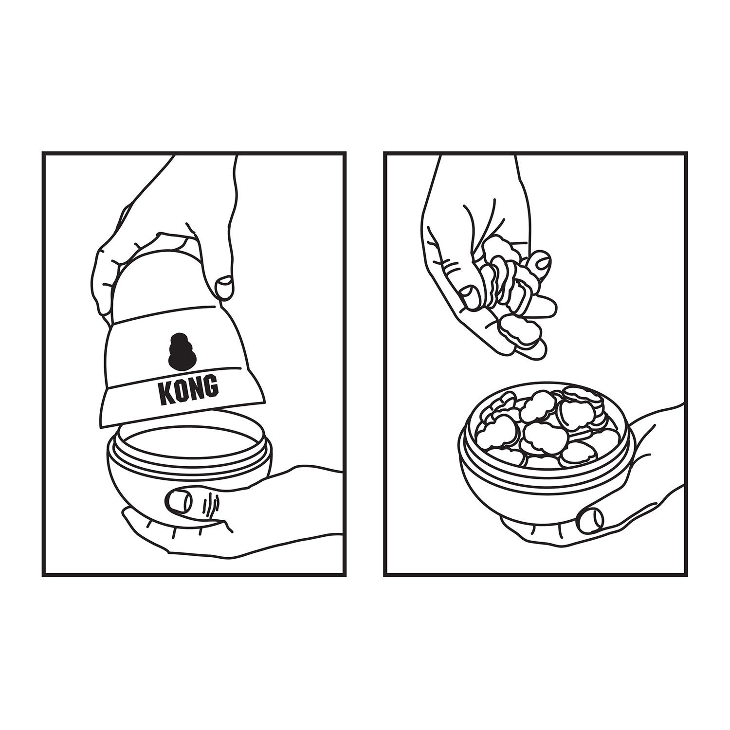 Il Kong Wobbler è un gioco erogatore di cibo dalla classica forma KONG che dispensa bocconcini e croccantini mentre si muove e rotola al vostro amico a 4 zampe.