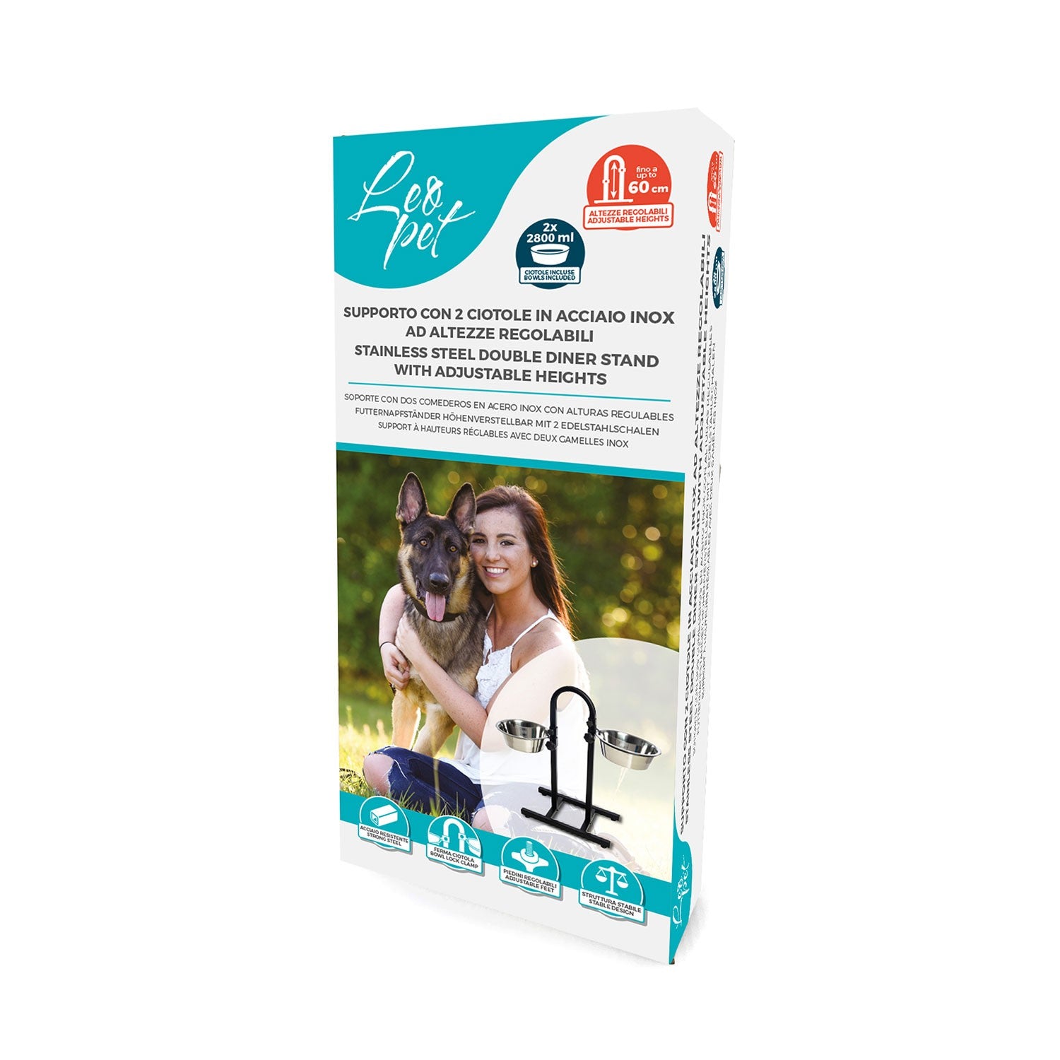 La LeoPet Doppia Ciotola in Acciaio Inox è progettata per semplificare i pasti del tuo cane, con una struttura stabile e sicura che consente al tuo pet di mangiare e bere in modo naturale. Il supporto in ferro, con la sua particolare forma a "U", è regolabile fino a un’altezza di 60 cm, consentendo al cane di consumare i pasti senza dover piegare troppo la testa. Questo è particolarmente vantaggioso per cani di taglia grande o con problemi articolari, come la displasia dell'anca o del gomito.
