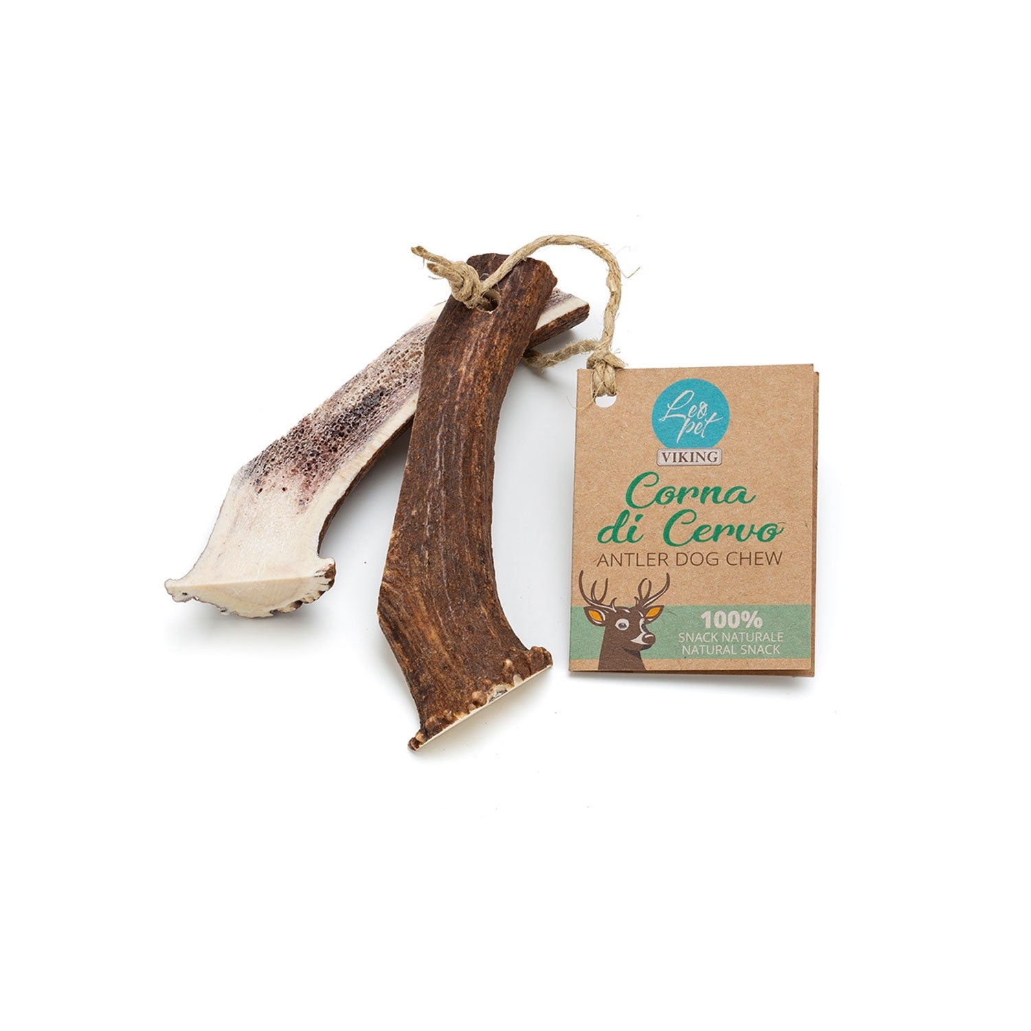 Le corna di cervo, tagliate a metà, di LeoPet sono lo snack da sgranocchiare di lunga durata, naturale e sano perfetto per il vostro cane. Le corna sono disponibili in vari formati per soddisfare le esigenze di cani di ogni razza e taglia. Non adatti a cuccioli di meno di 4 mesi.