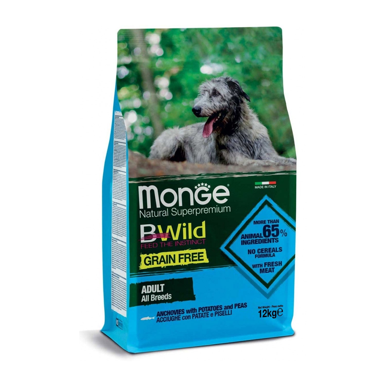 Le Monge Bwild Natural SuperPremium Grain Free Formula All Breeds Crocchette Acciughe con Patate e Piselli sono un alimento completo e bilanciato pensato per il benessere di cani adulti di tutte le taglie. Grazie a una formula innovativa priva di cereali, basata su fonti alternative di carboidrati come patate e piselli, queste crocchette rappresentano la scelta ideale per una dieta sana, equilibrata e rispettosa delle esigenze nutrizionali del tuo amico a quattro zampe.