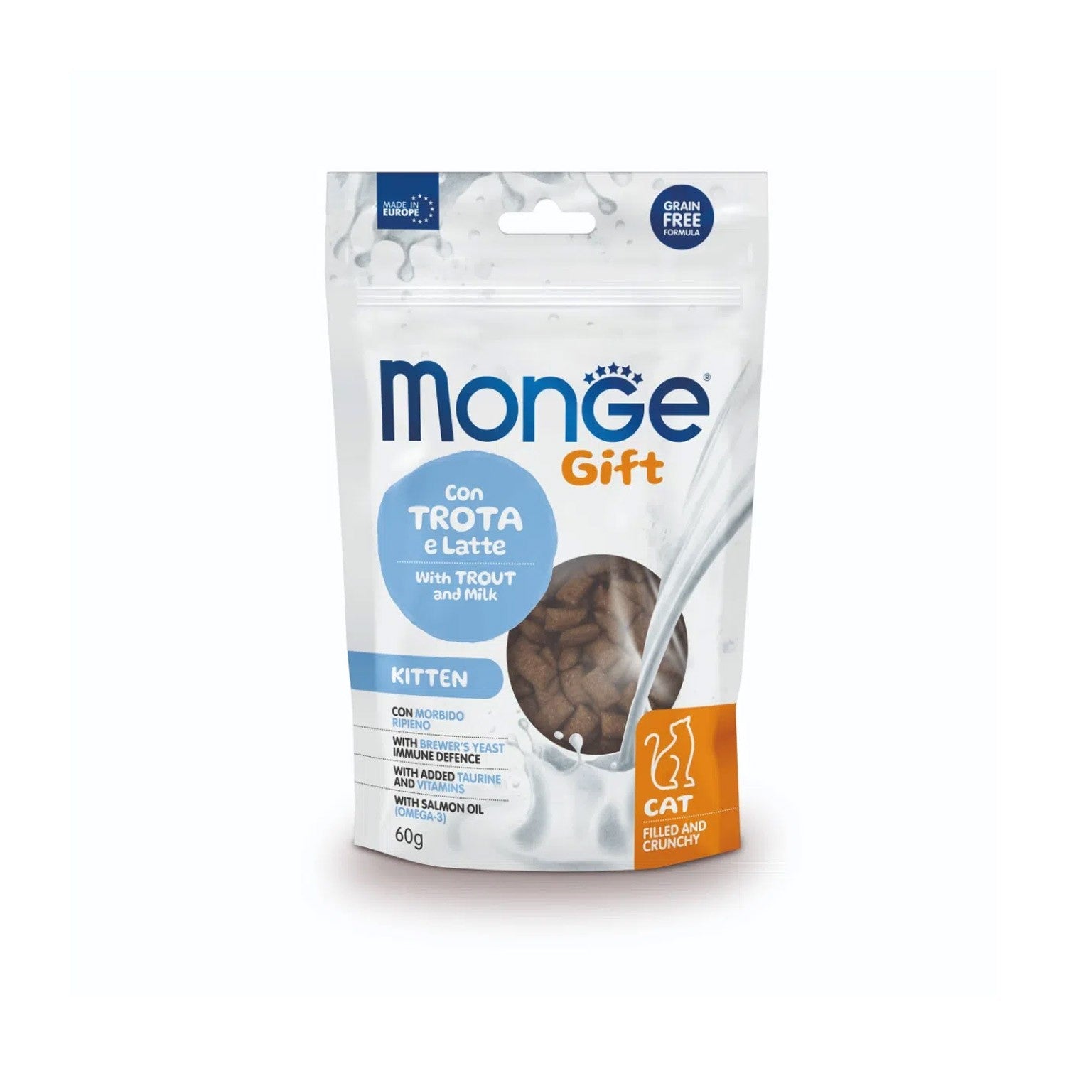 Gli Snack Monge con Trota e Latte sono l'alimento complementare perfetto per i gattini in fase di crescita. Creato con cura per fornire un sostegno nutrizionale completo e delizioso, questo snack per gattini è pensato per promuovere il benessere generale e lo sviluppo ottimale del tuo piccolo amico felino.