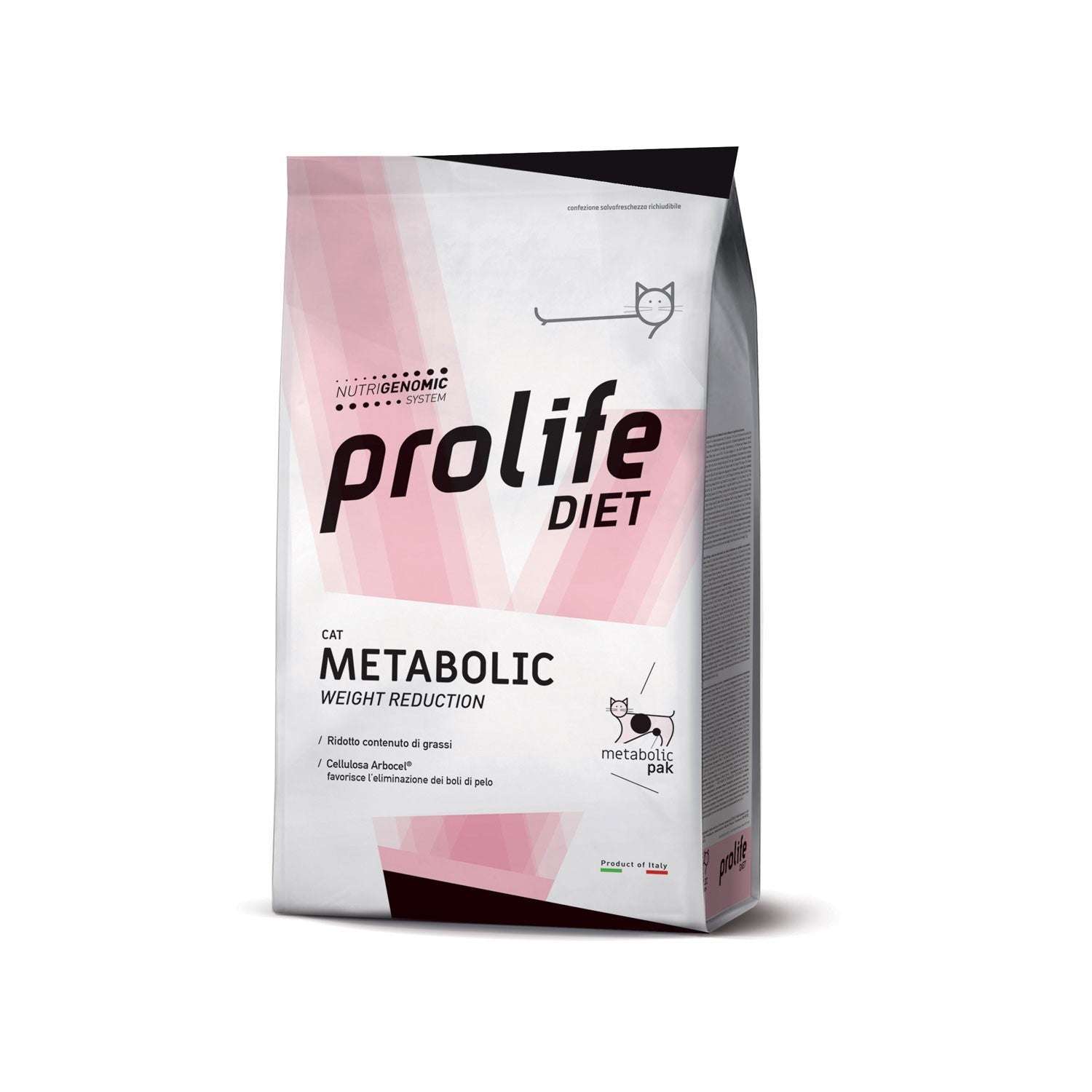 Prolife Metabolic è disponibile in formati da 1,5 kg e 5 kg, permettendo di scegliere la quantità più adatta alle esigenze del proprio gatto e garantendo un approvvigionamento costante e di alta qualità.