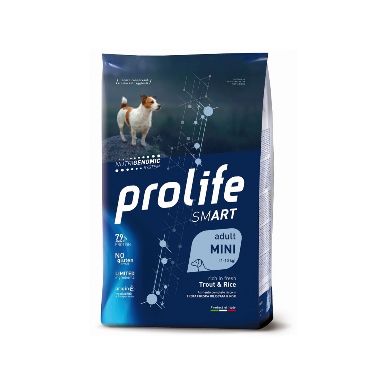 Prolife Smart Adult Trout & Rice Mini è un alimento completo composto da crocchette a base di trota e riso, adatto a cani adulti di piccola taglia. La sua composizione, composta principalmente da trota salmonata fresca diliscata e riso di origini italiane, è ricca di omega3, proteine, grassi essenziali e vitamine ad alta digeribilità, adatta anche ai cani intolleranti al glutine. L’origine dei suoi ingredienti è principalmente italiana, per garantire un’altissima qualità e un gusto appetitoso.