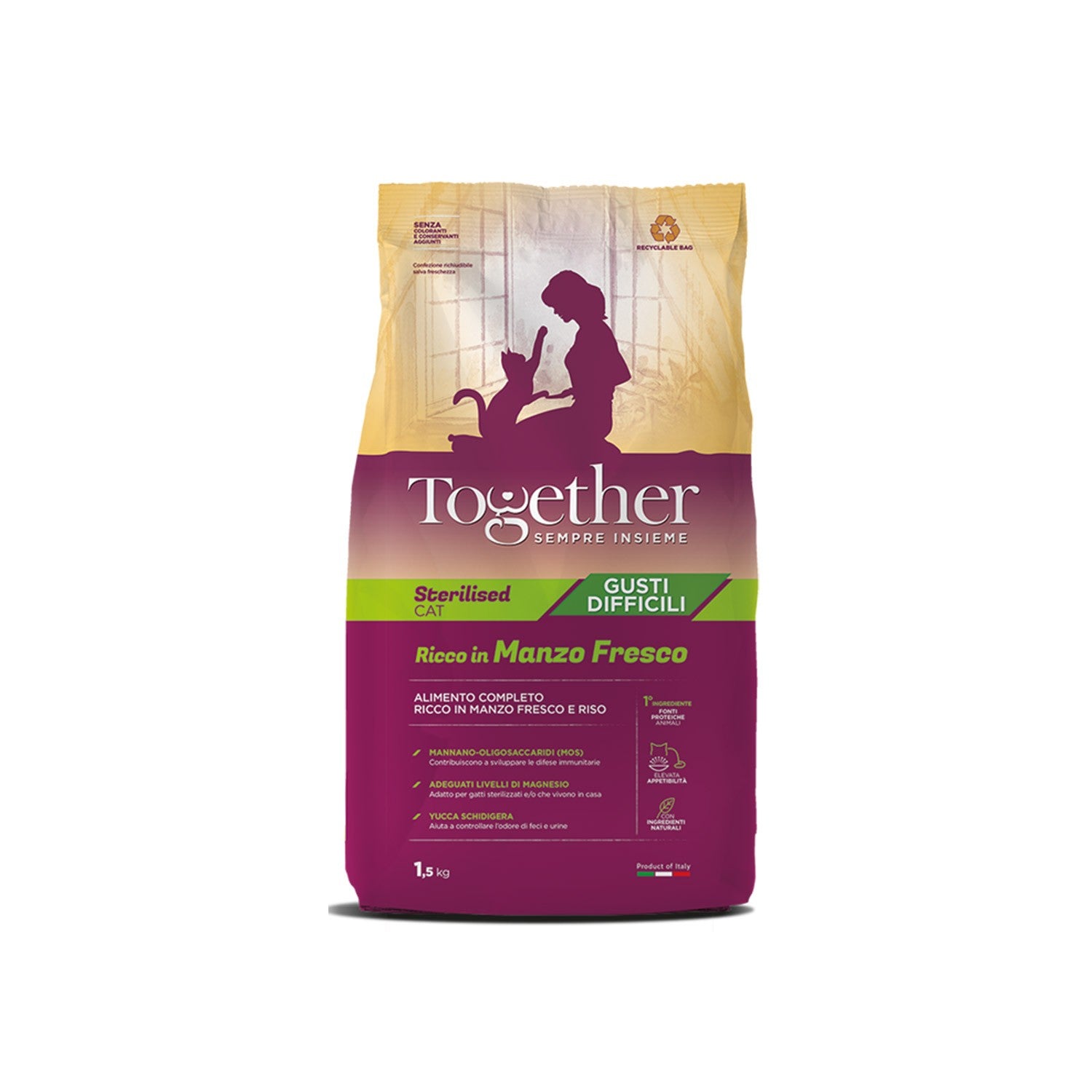Le crocchette Together Cat Adult Sterilized Gusti Difficili al Manzo sono disponibili nei formati: