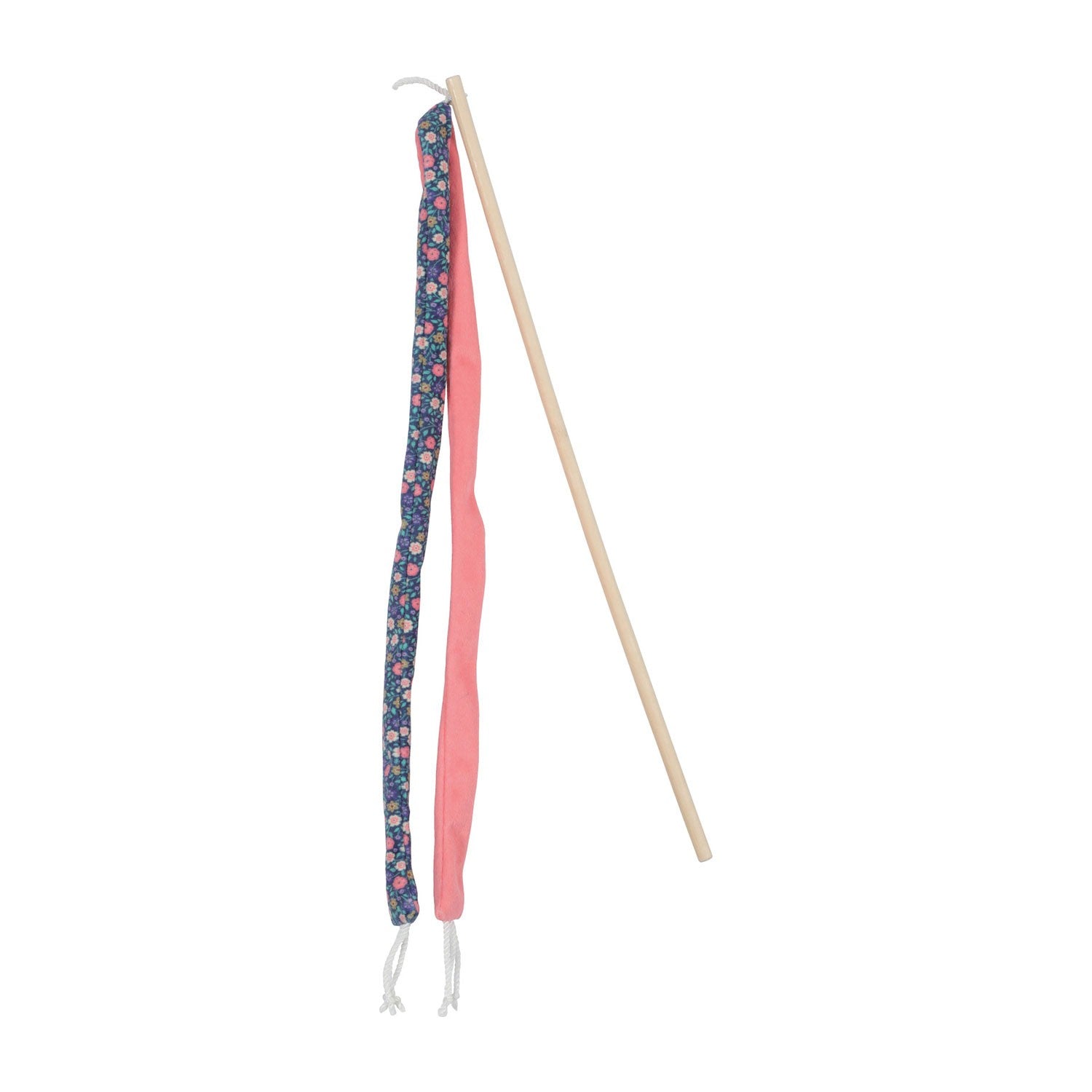 Composto da poliestere riciclato, è costituito da un peluche morbido a forma di nastro lungo con imbottitura, cuciture e ricambi in poliestere 100% riciclato. Presenta un pattern florale colorato nelle tonalità pastello che offre un design elegante ad un gioco funzionale. La presenza di erba gatta all’interno del gioco, lo rende particolarmente irresistibile per il vostro gatto grazie al suo effetto euforizzante. La canna da pesca è composta da un bastoncino in bambù.