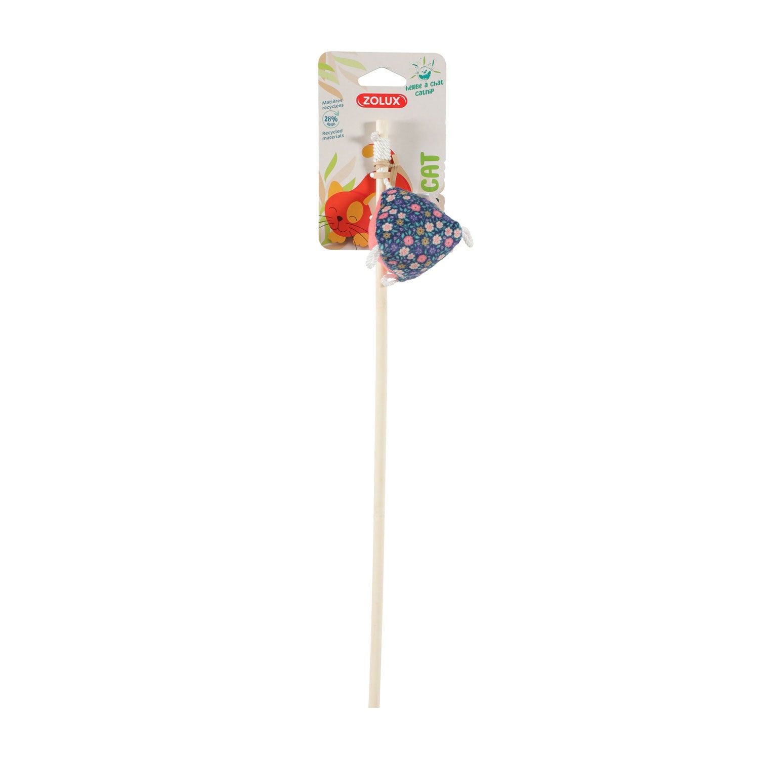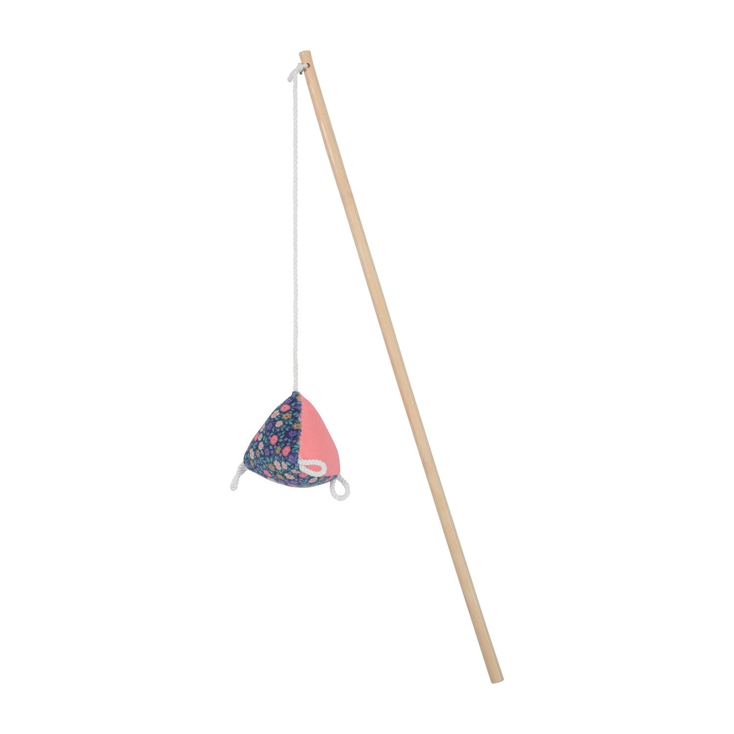 Composto da poliestere riciclato, è costituito da un peluche morbido a forma di piramide con imbottitura, cuciture e ricambi in poliestere 100% riciclato. Presenta un pattern florale colorato nelle tonalità pastello che offre un design elegante ad un gioco funzionale. La presenza di erba gatta all’interno del gioco, lo rende particolarmente irresistibile per il vostro gatto grazie al suo effetto euforizzante. La canna da pesca è composta da un bastoncino in bambù.