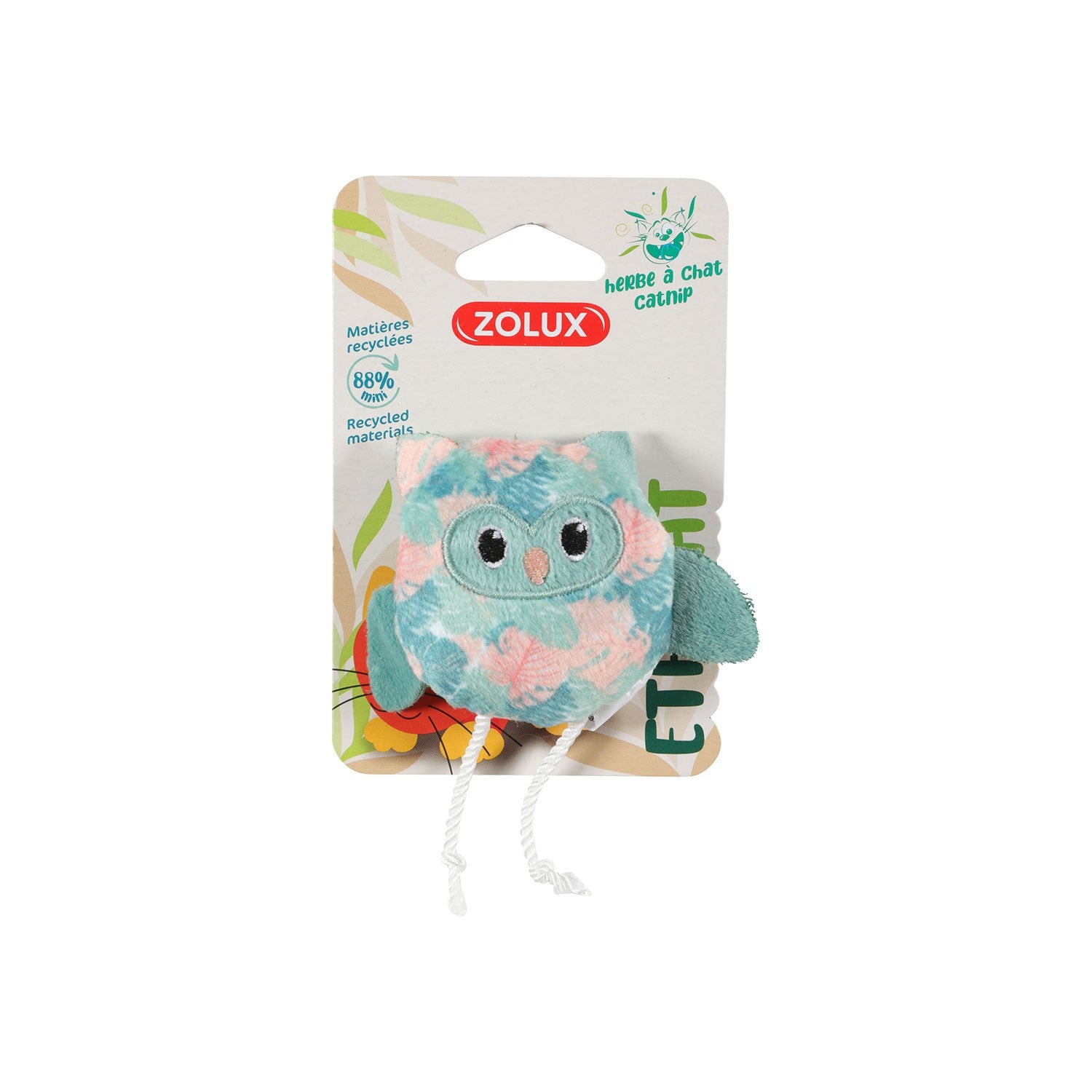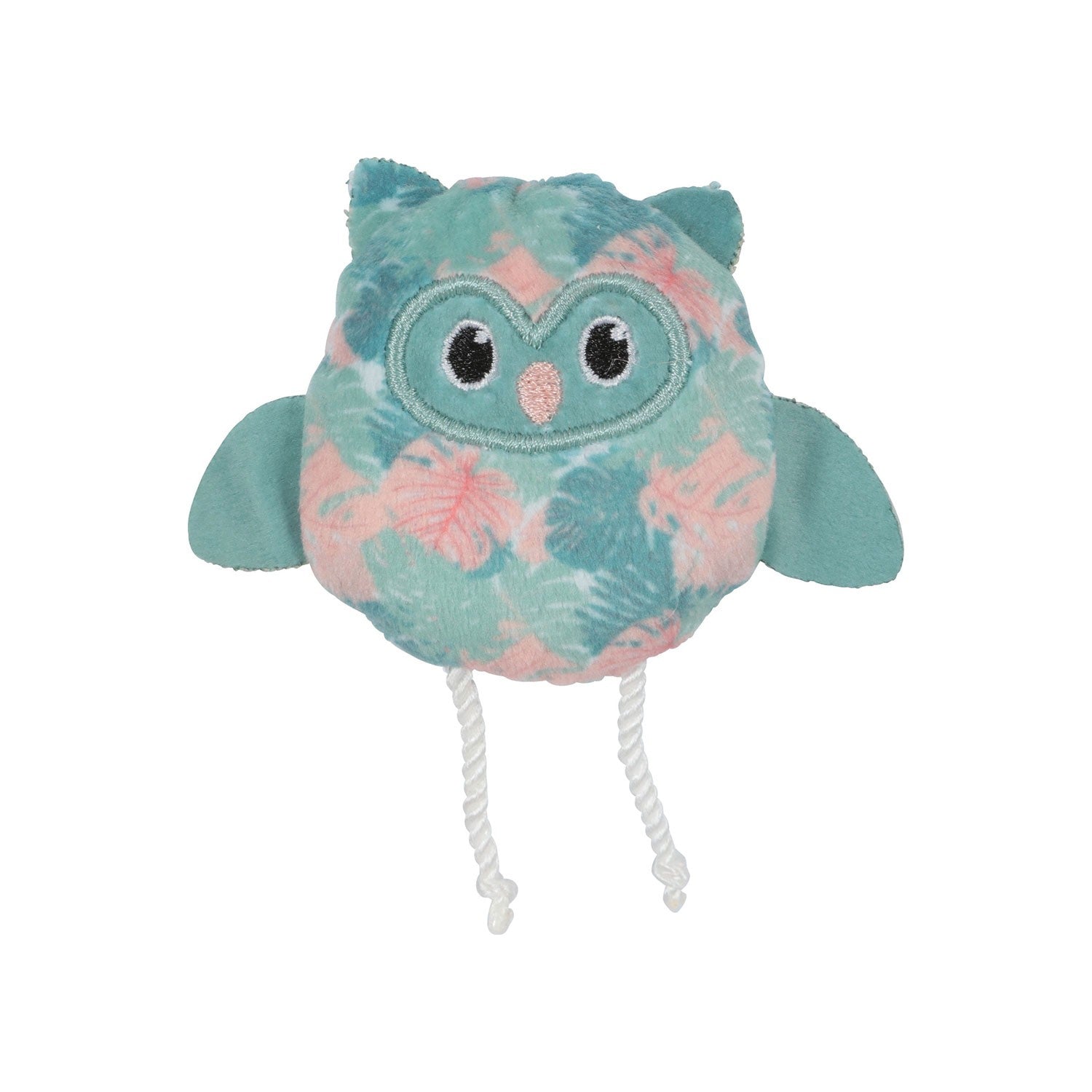 Composto da poliestere riciclato, è costituito da un peluche morbido a forma di gufo con imbottitura, cuciture e ricambi in poliestere 100% riciclato. Presenta un pattern a foglie colorate nelle tonalità pastello che offrono un design elegante ad un gioco funzionale. La presenza di erba gatta all’interno del gioco, lo rende particolarmente irresistibile per il vostro gatto grazie al suo effetto euforizzante.
