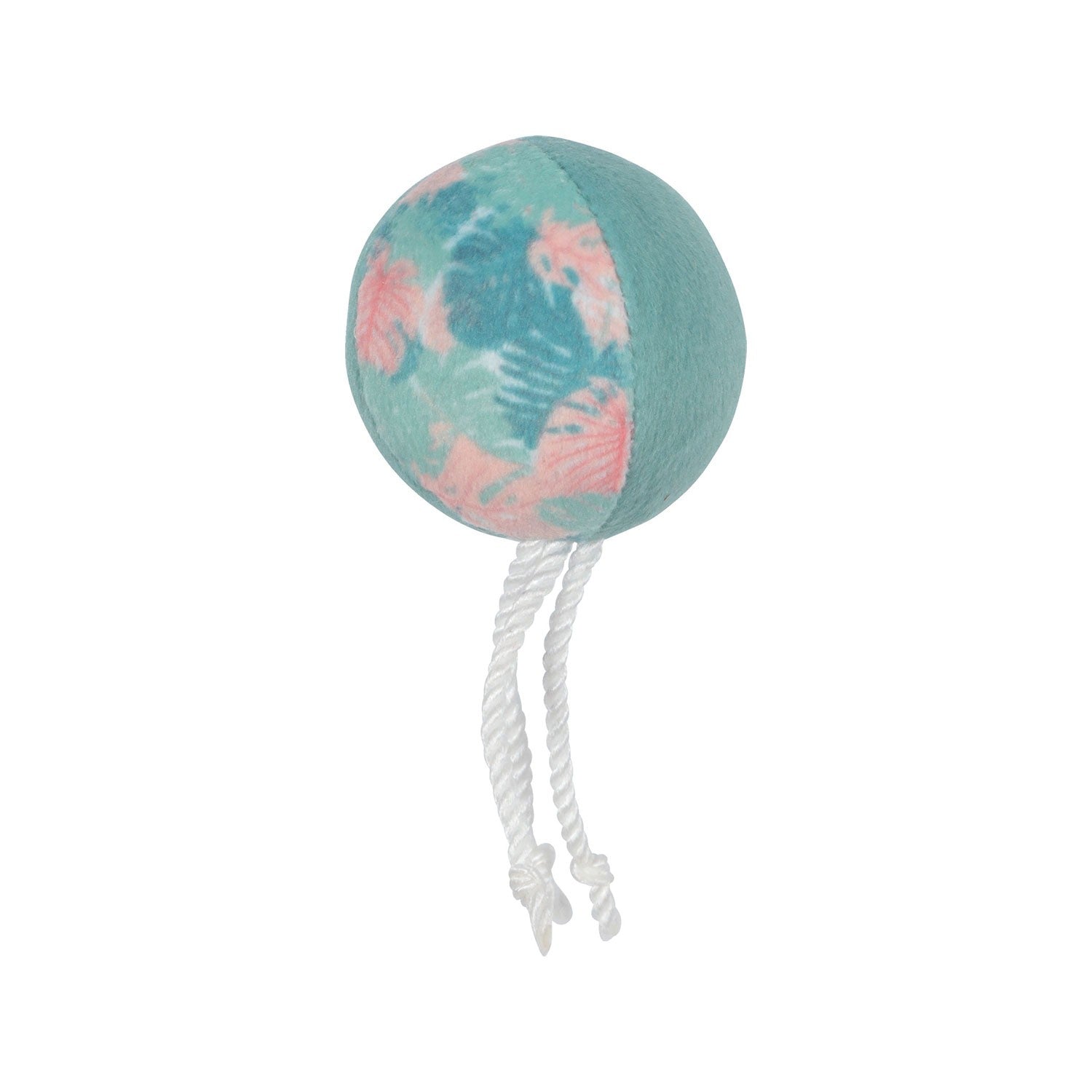 Composto da poliestere riciclato, la palla è costituito da un peluche morbido con imbottitura, cuciture e ricambi in poliestere 100% riciclato. Presenta un pattern a foglie colorate nelle tonalità pastello che offrono un design elegante ad un gioco funzionale. La presenza di erba gatta all’interno del gioco, lo rende particolarmente irresistibile per il vostro gatto grazie al suo effetto euforizzante.
