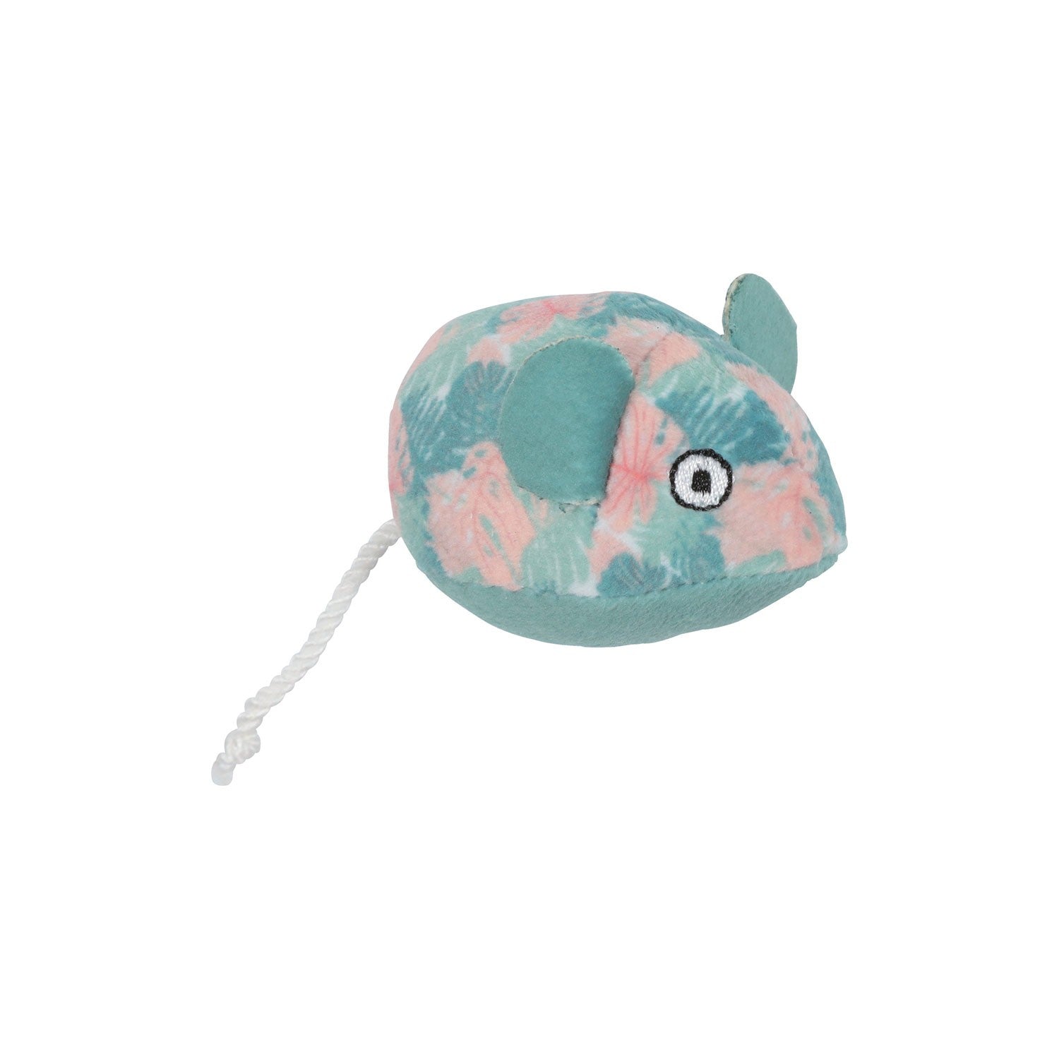 Composto da poliestere riciclato, è costituito da un peluche morbido a forma di topolino con imbottitura, cuciture e ricambi in poliestere 100% riciclato. Presenta un pattern a foglie colorate nelle tonalità pastello che offrono un design elegante ad un gioco funzionale. La presenza di erba gatta all’interno del gioco, lo rende particolarmente irresistibile per il vostro gatto grazie al suo effetto euforizzante.