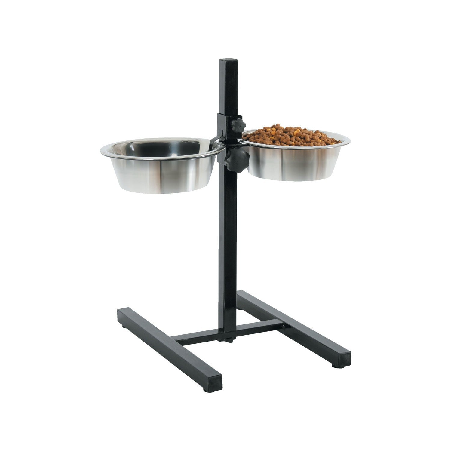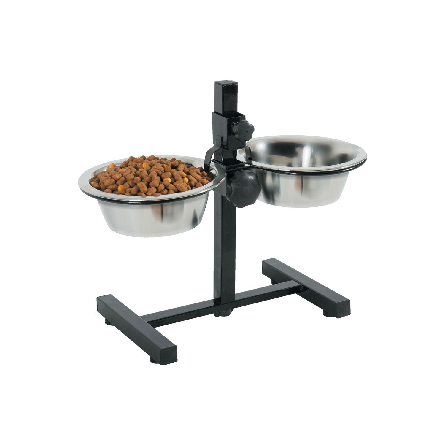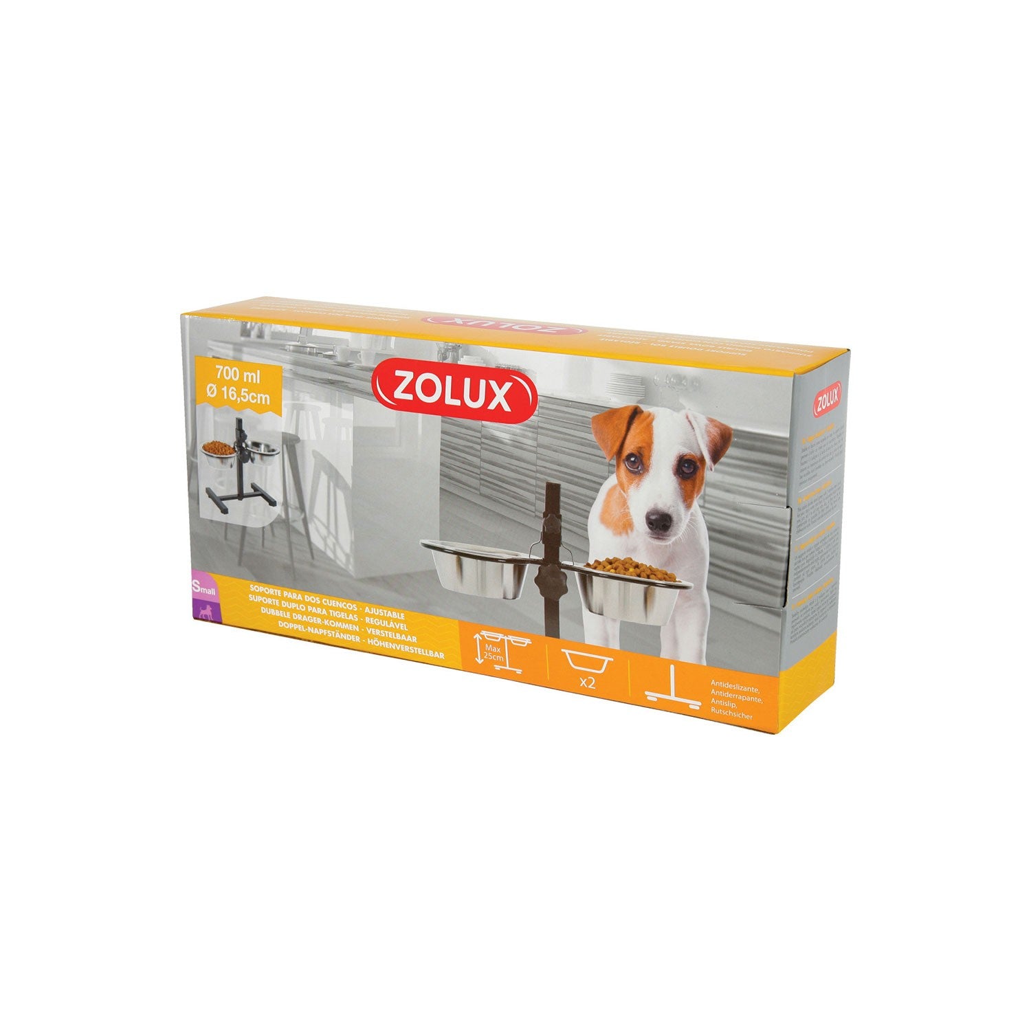 Per favorire una posizione comoda per il pasto del vostro amico a 4 zampe, Zolux offre il suo supporto regolabile con 2 ciotole in acciaio inox. Il supporto si regola in altezza in base alle esigenze del vostro animale e contiene le due ciotole in acciao inox per somministrare cibo e acqua contemporaneamente senza doversi piegare troppo.